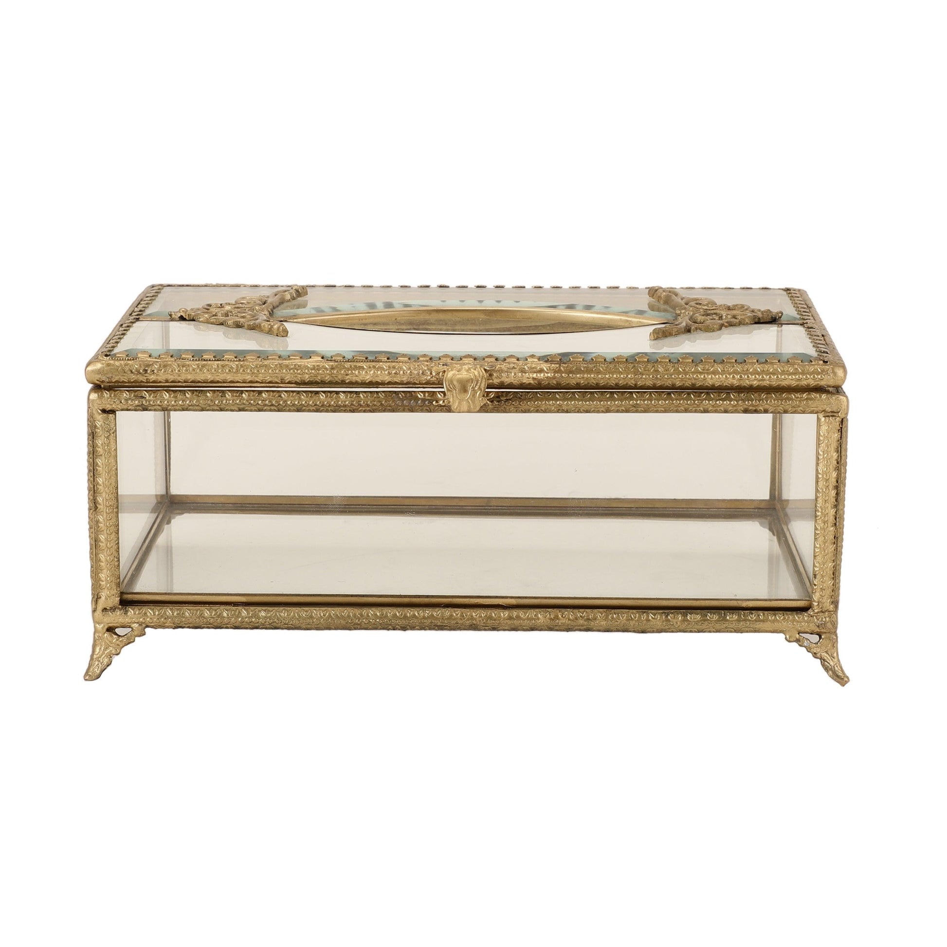 Introducing the Victorian Elegance Napkin Box, a splendid fusion of brass and glass craftsmanship inspired by the opulence of the Victorian era. Adorned with intricate brass floral accents reminiscent of Victorian motifs, this napkin box adds a touch of refined sophistication to any dining setting. Keep your napkins organized in style and elevate your dining experience with the timeless charm of the Victorian Elegance Brass and Glass Napkin Box.