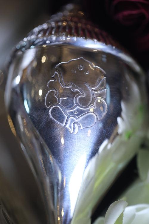 Invoke the divinity with Sacred Silver Shankh (Conch) with a Golden Hue. Imbued with purity, this ethereal masterpiece mirrors the essence of the natural shankh. While its intricate design, harmonizes the earthly and the celestial. A poetic vessel that resonates with the sacred, inviting you to embark on a spiritual journey.