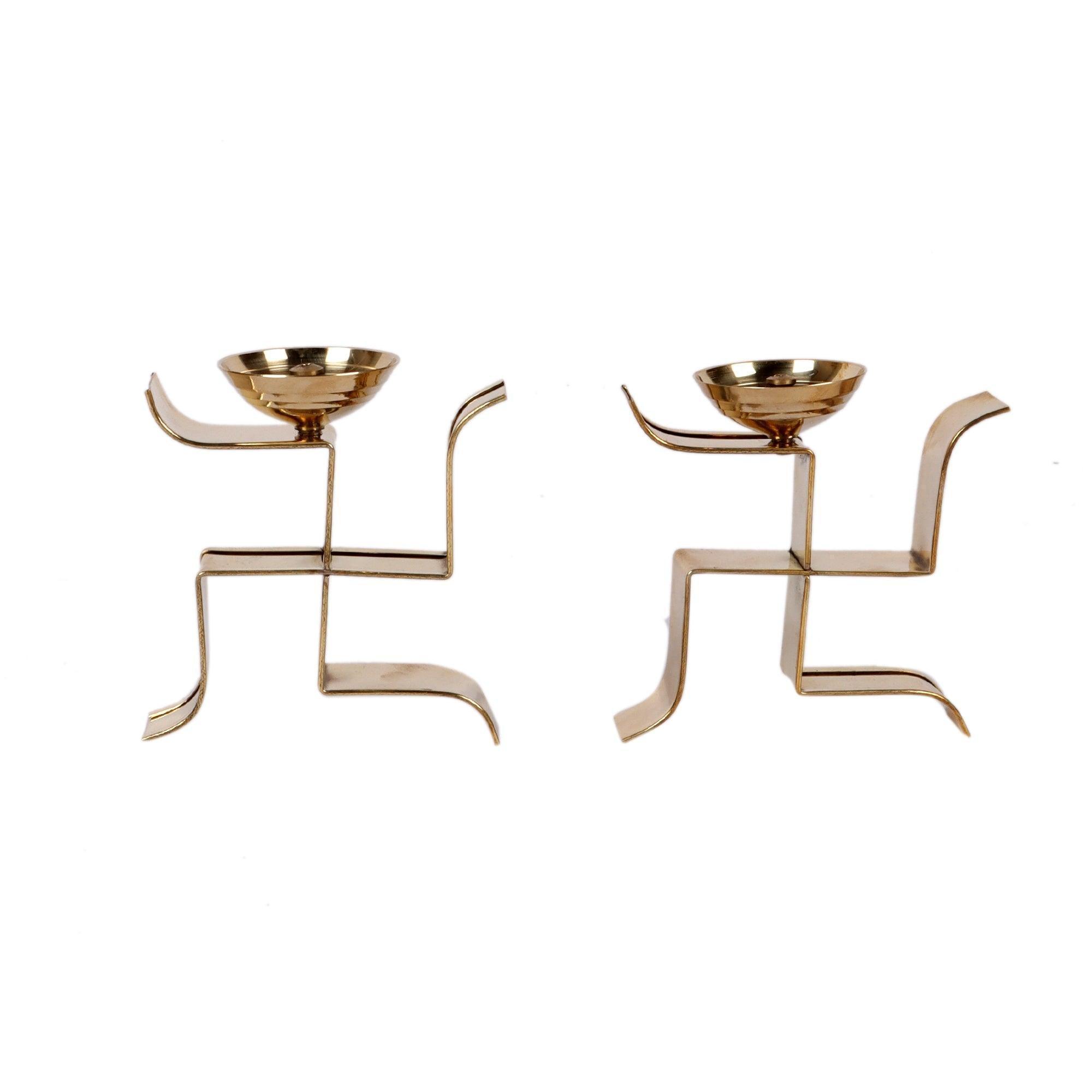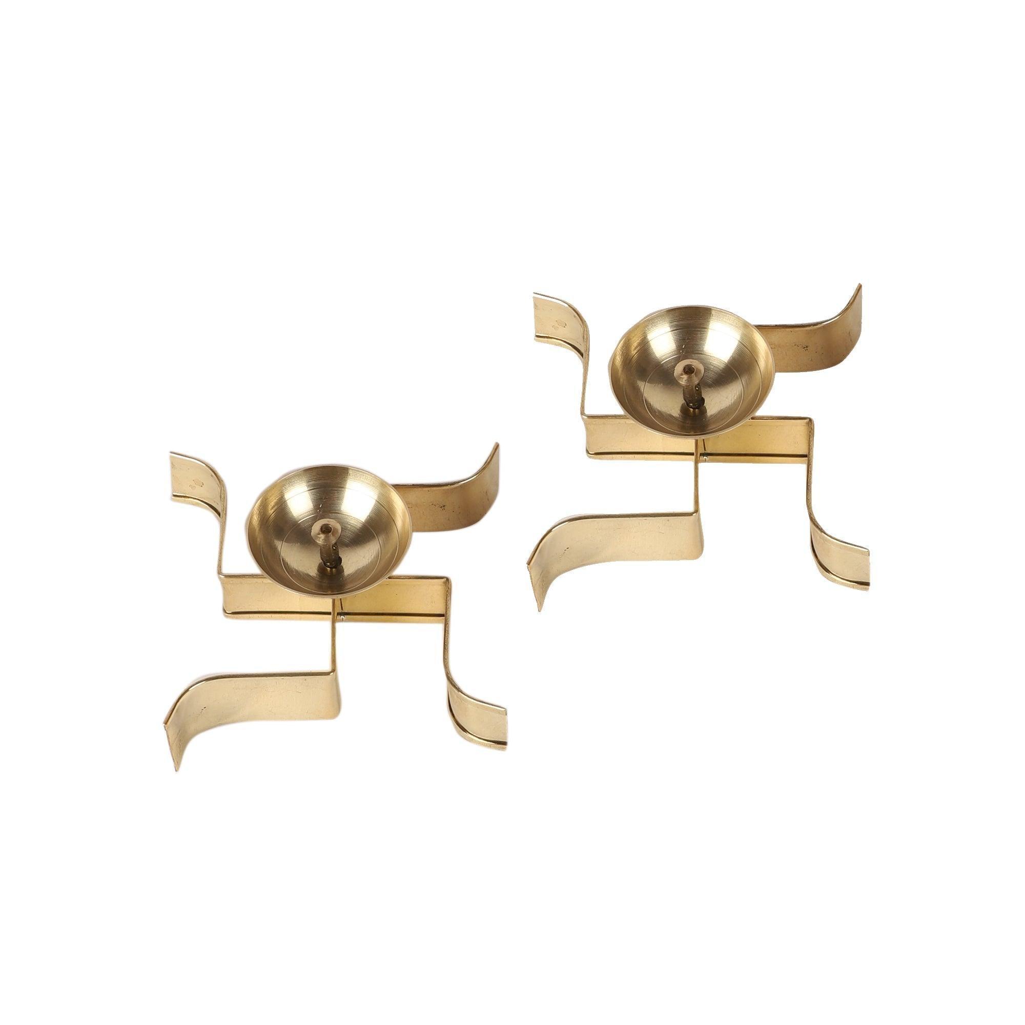 Buy Diya & Diya Stand - Golden Standing Satiya Diya Set Of 2 | Brass Swastik Tealight Holder by Amaya Decors on IKIRU online store
