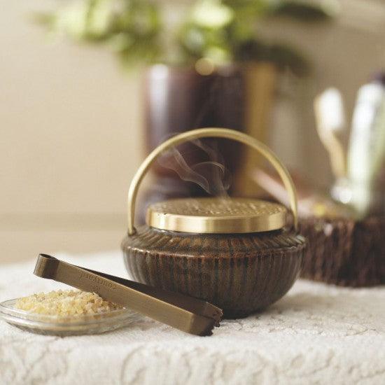 Green Ceramic & Brass Mandala Fumer With Tong For Puja Essential