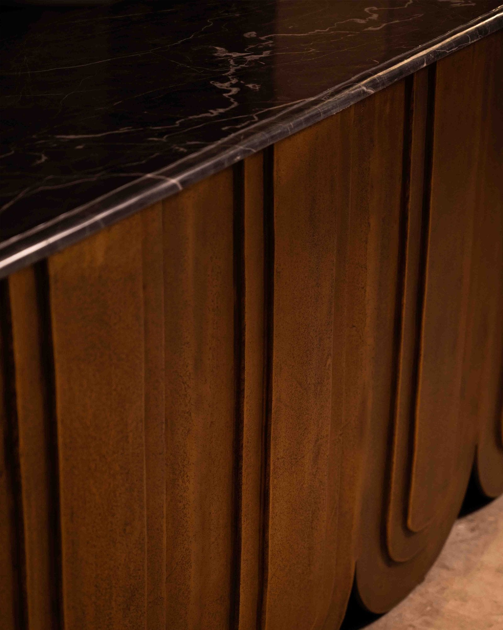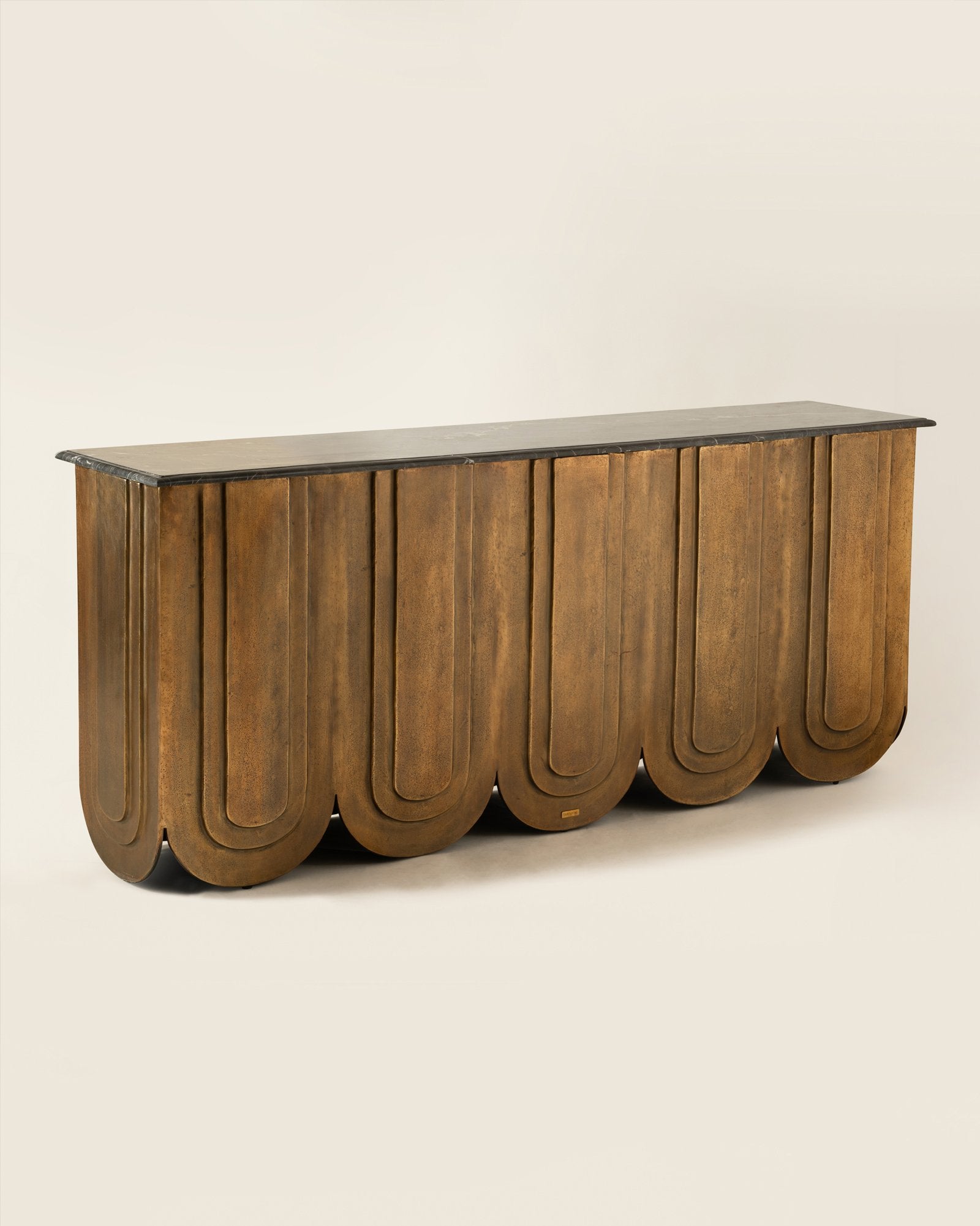 Like Cloth Turned To Stone, The Veil Tables Capture The Fall Of Drapery In Cast Metal. Their Surfaces Ripple With Frozen Motion, As If Fabric Once Caught In A Mediterranean Breeze Has Been Solidified By Time. In Antique Brass, They Glow With The Warmth Of Relics Unearthed From A Sunken Atrium.