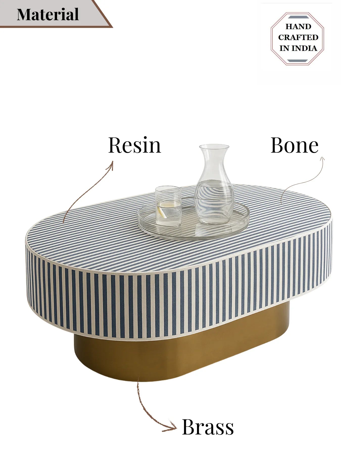 Experience luxury with the Waterfall Inlay Oval Coffee Table, masterfully handcrafted with exquisite Bone inlay. Featuring a distinctive striped pattern and graceful oval silhouette, this statement piece adds refined elegance to any living space." Material: Bone & MOP, Engineered Wood, Resin & Brass. Shape: Oval. Delivered in customized Hard wood boxes for safe delivery.