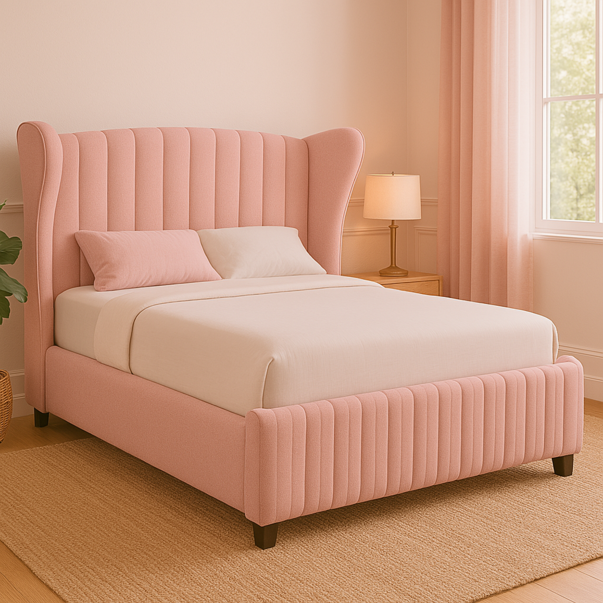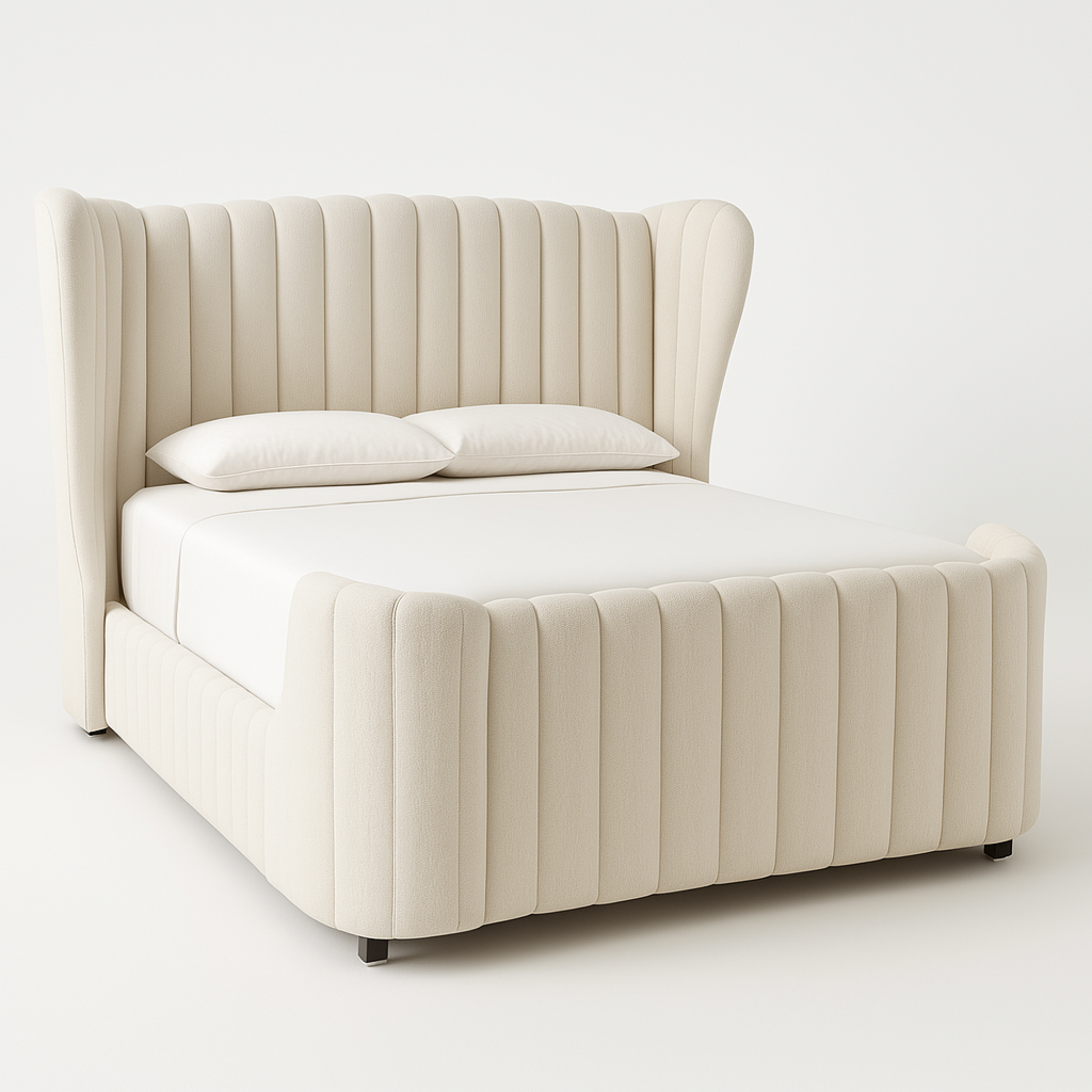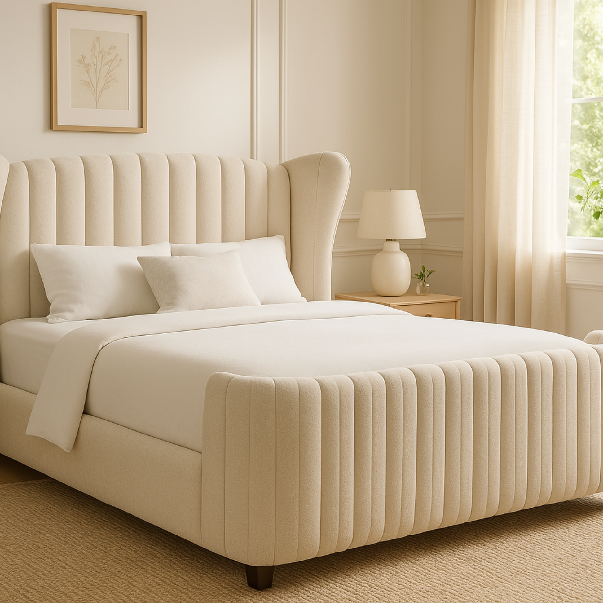 Bring modern charm and comfort to your bedroom with the Dream crest Upholstered Bouclé Bed. Its gently curved, wingback headboard is wrapped in soft, textured boucle fabric, adding warmth and elegance to your space. The sturdy sprung slatted base is designed for excellent support and relaxation, while strong metal legs provide lasting stability and a contemporary touch.