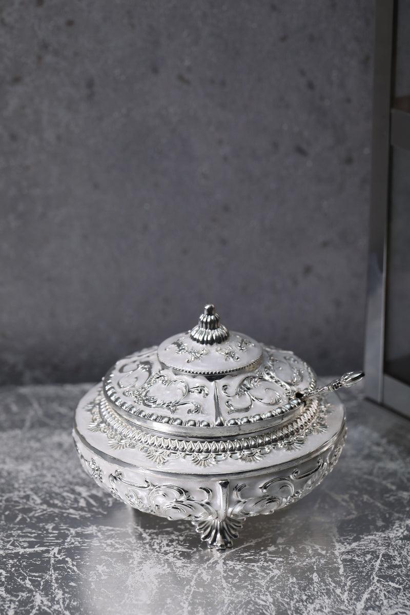Platina Gold & White Stylish Sugar Pot | Jar For Kitchen