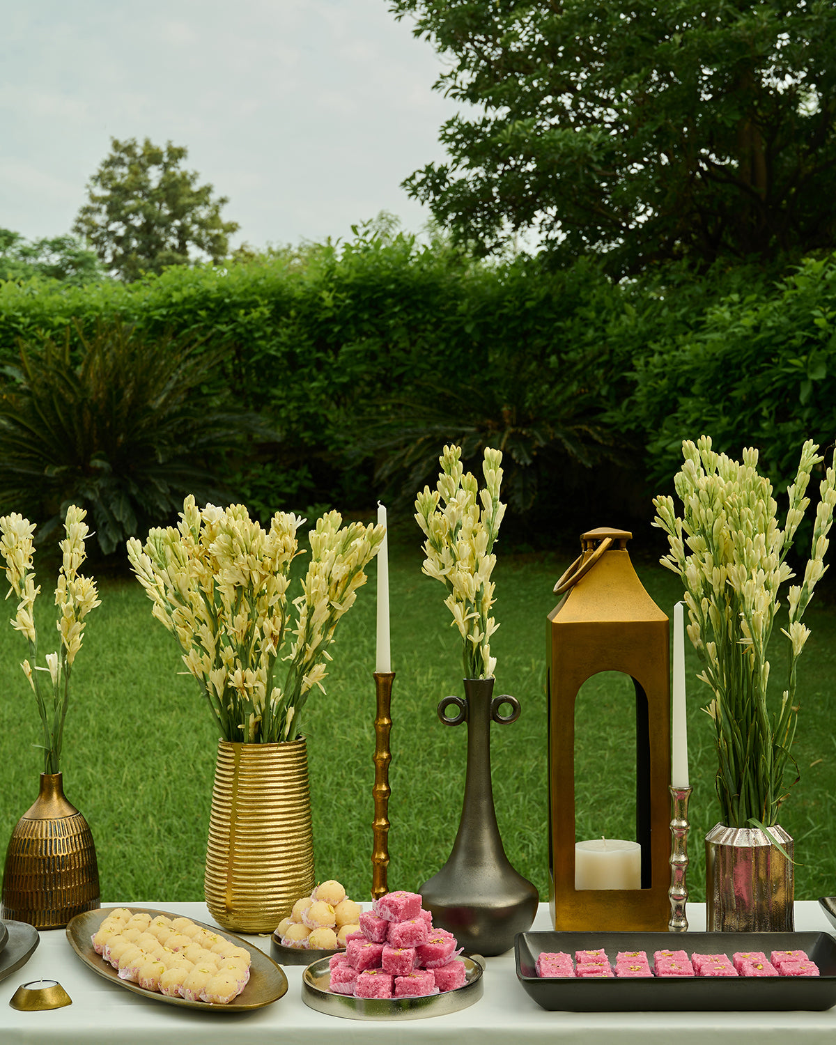 Shop Stella Lantern in cast aluminium with brass antique finish at 27 in a tall sculptural piece that sets a dramatic festive lighting statement