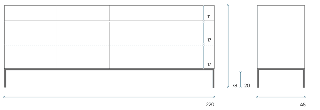 A clean and pure look with stainless steel legs, the Apollo Sideboard in solid Wood offers a perfect storage facility for the kitchen, living room or dining room.
