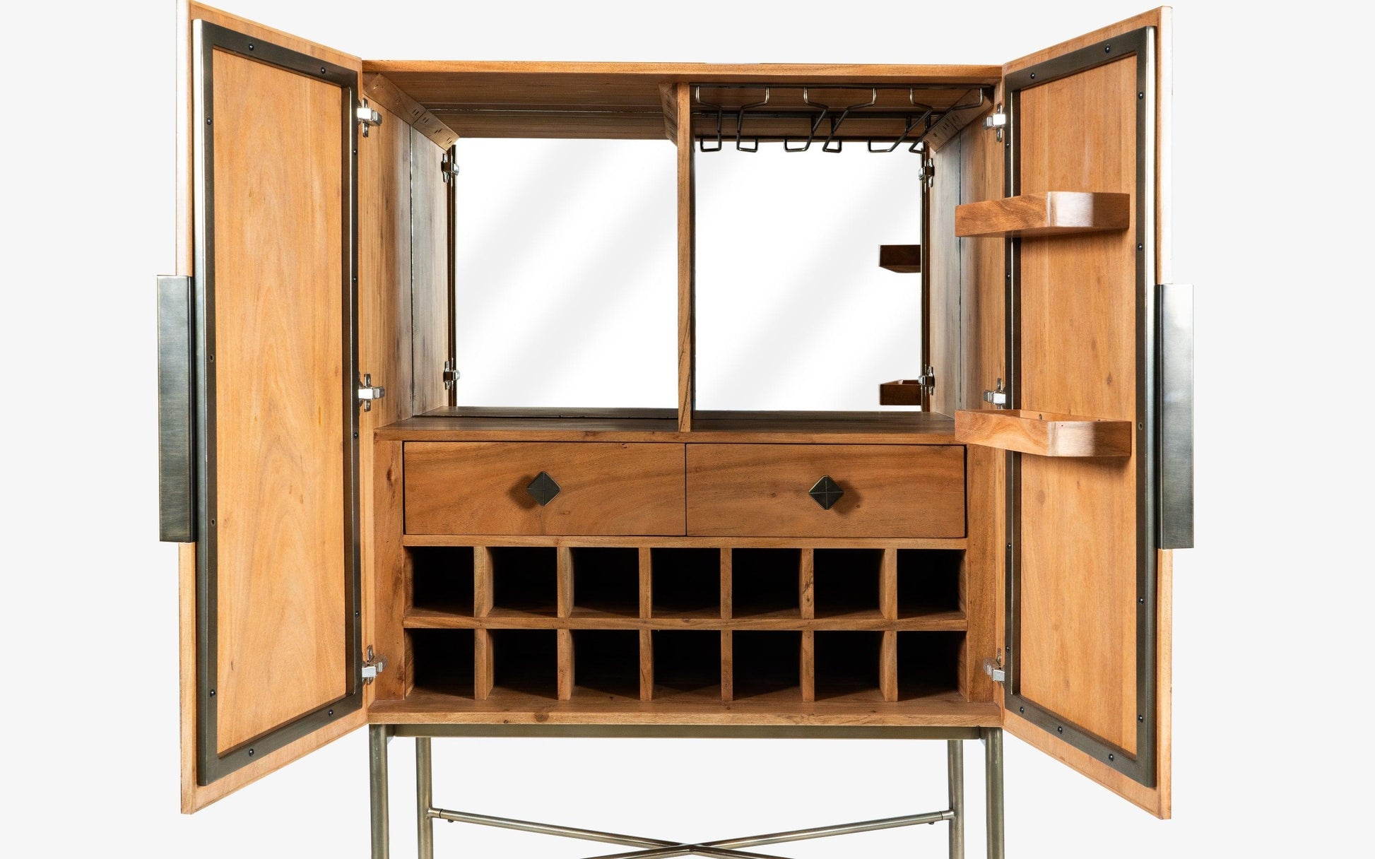 Arrow Bar Unit | Acacia Wood, Veneer, Stainless Steel, Mirror, and Oak Wood