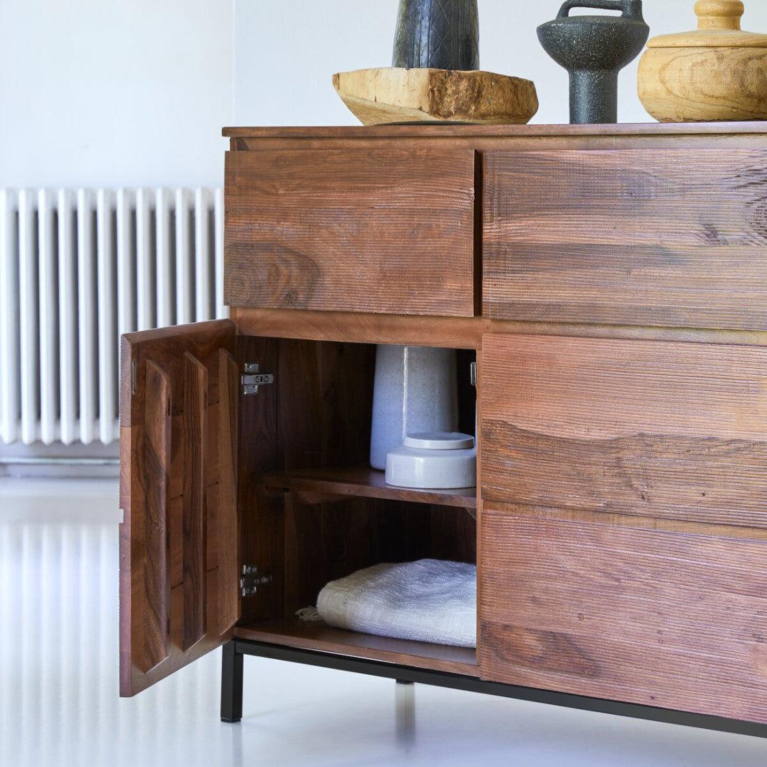 Quasar Large Sideboard With Metal Legs Strip Design Honey Finish Size - Large