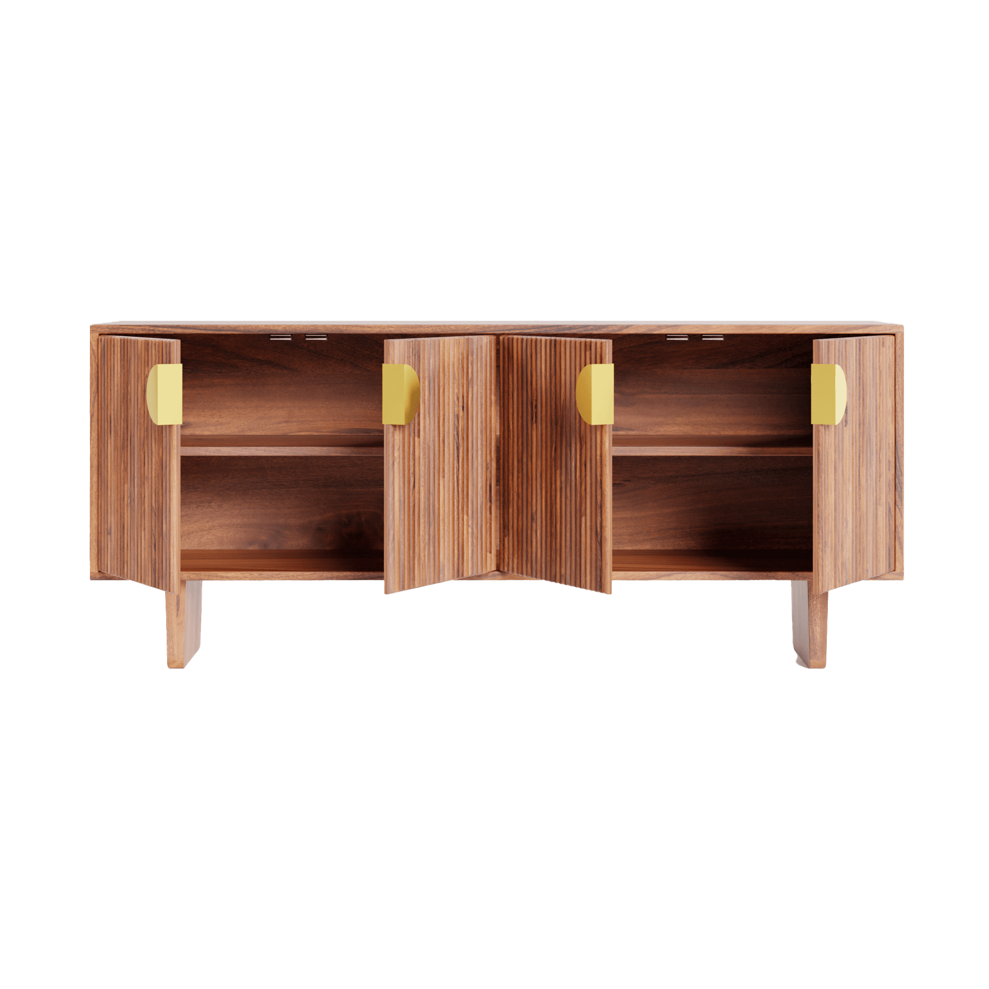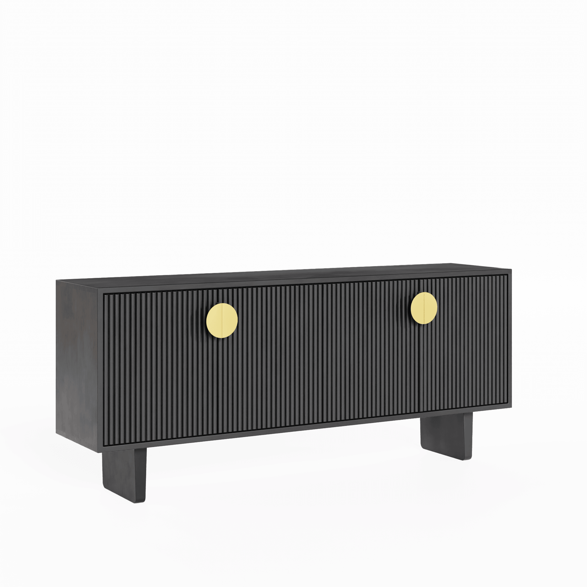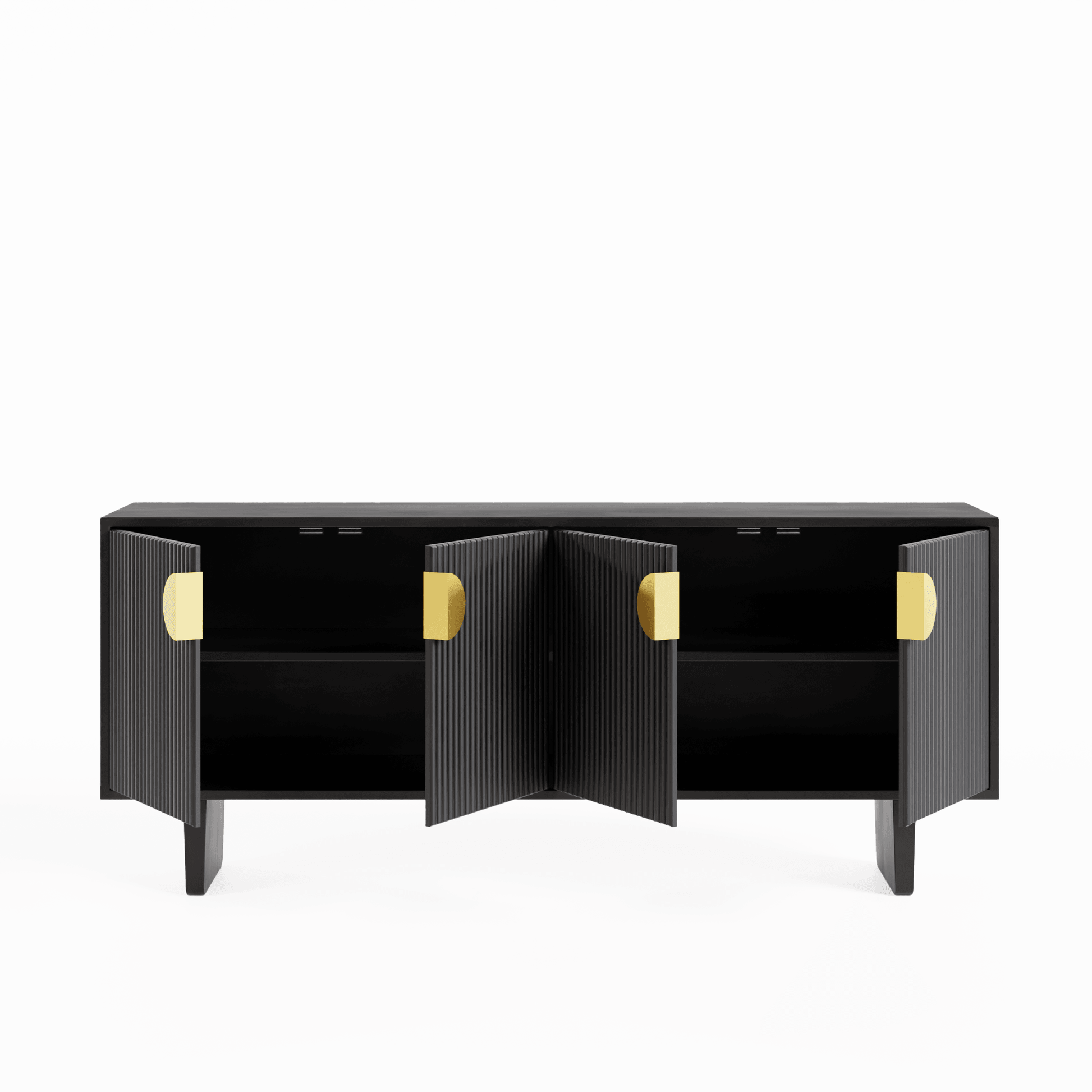 The Ringo Sideboard is the ultimate blend of style and function. This versatile buffet cabinet doubles as a media cabinet, dining console, and storage buffet, offering ample space for all your essentials. Its sleek console design makes it perfect for any modern living room or dining area. Whether as a chic buffet, display sideboard, or bar cabinet, this elegant storage unit adds sophistication to your home. With a minimalist server style and art deco-inspired finish, it’s a curated storage solution that’s both functional and beautiful.