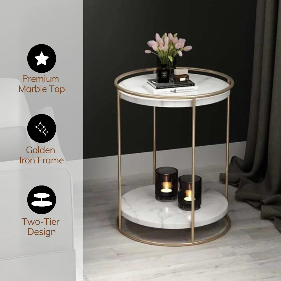 3 Tier Shelf End Table | Elegant Marble Top Sofa Side Table for Living Room| Corner Table