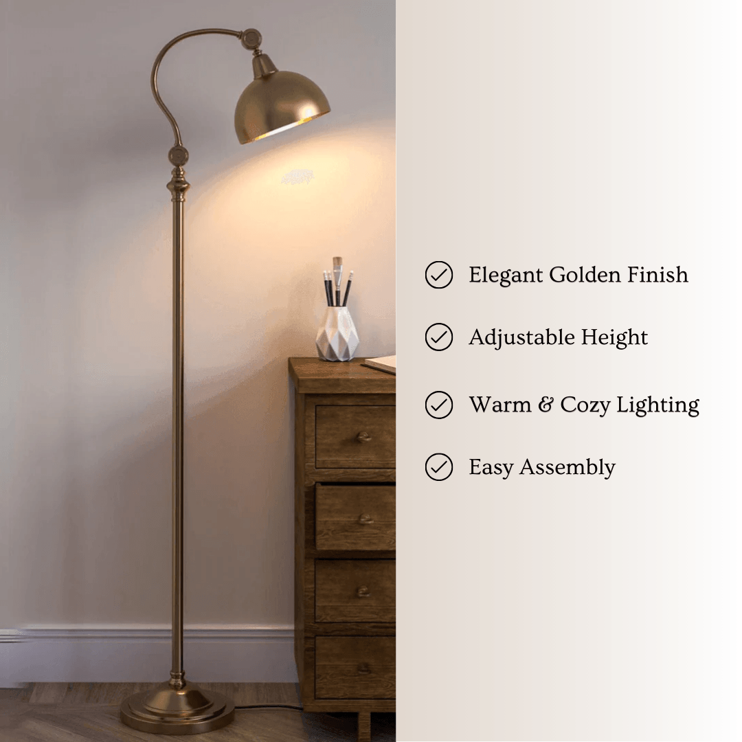 Vintage Curved Golden Floor Lamp | Standing Lamp for Living Room | Corner Lamp