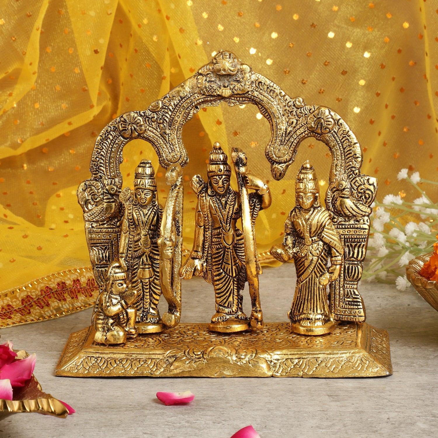 Aluminium.Ram Darbar is the essence of Ramayana and what it represents. Ram Darbar is the unification representation of the ideal relationship of Marriage, Sibling Love and Devotion.They add a touch of positive energy power and calmness to your room with its shiny appearance.This beautifully handmade god showpieces adds a beautiful look to your home and temple. They add a touch of positive energy power and calmness to your room with its shiny appearance.Beautiful gift ideal for birthday, anniversary or a good luck wish to your friends, family or colleague. A beautifully handicraft item prepared with love and devotion. Ideal for home or office.