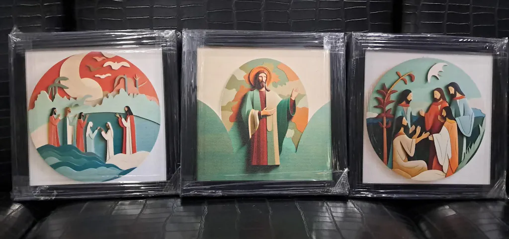 Transform your home into a sanctuary of peace and faith with Artisan Canvas Wall Decor. This exquisite piece of art features an abstract portrayal of Jesus and his four disciples, beautifully crafted on premium canvas. Each stroke of the brush captures the essence of spirituality and brings a sense of calmness to any room. Hand-framed with precision, this wall decor is a perfect addition to your living room, bedroom, or any space that needs a touch of divine ambiance. The high-quality canvas and frame ensure durability and longevity, making it a timeless piece that will be cherished for years to come. Artisan Canvas Wall Decor is not just a decorative piece, but a symbol of faith and devotion. It serves as a reminder of the teachings of Jesus and the importance of having a strong bond with one's disciples. Bring home this masterpiece and let it be a source of inspiration and tranquility in your daily life.