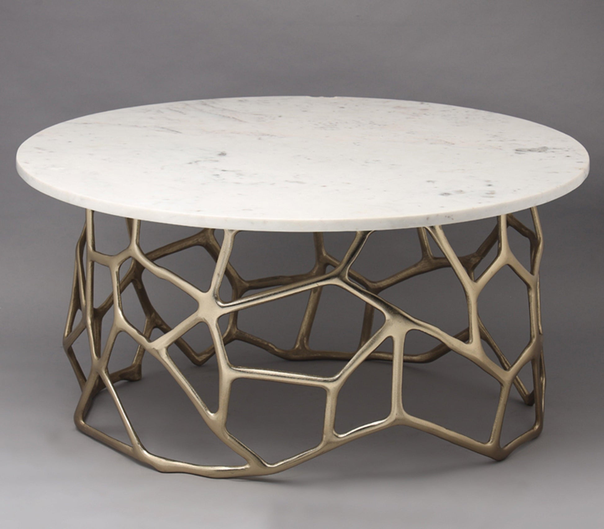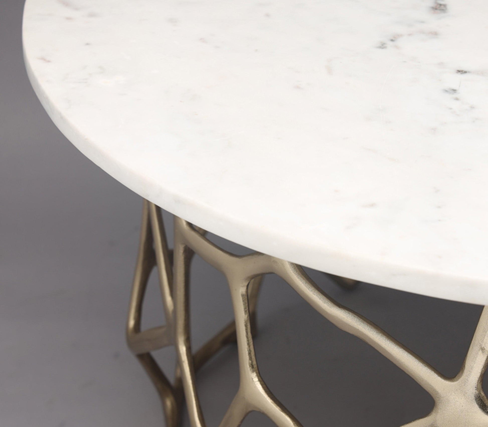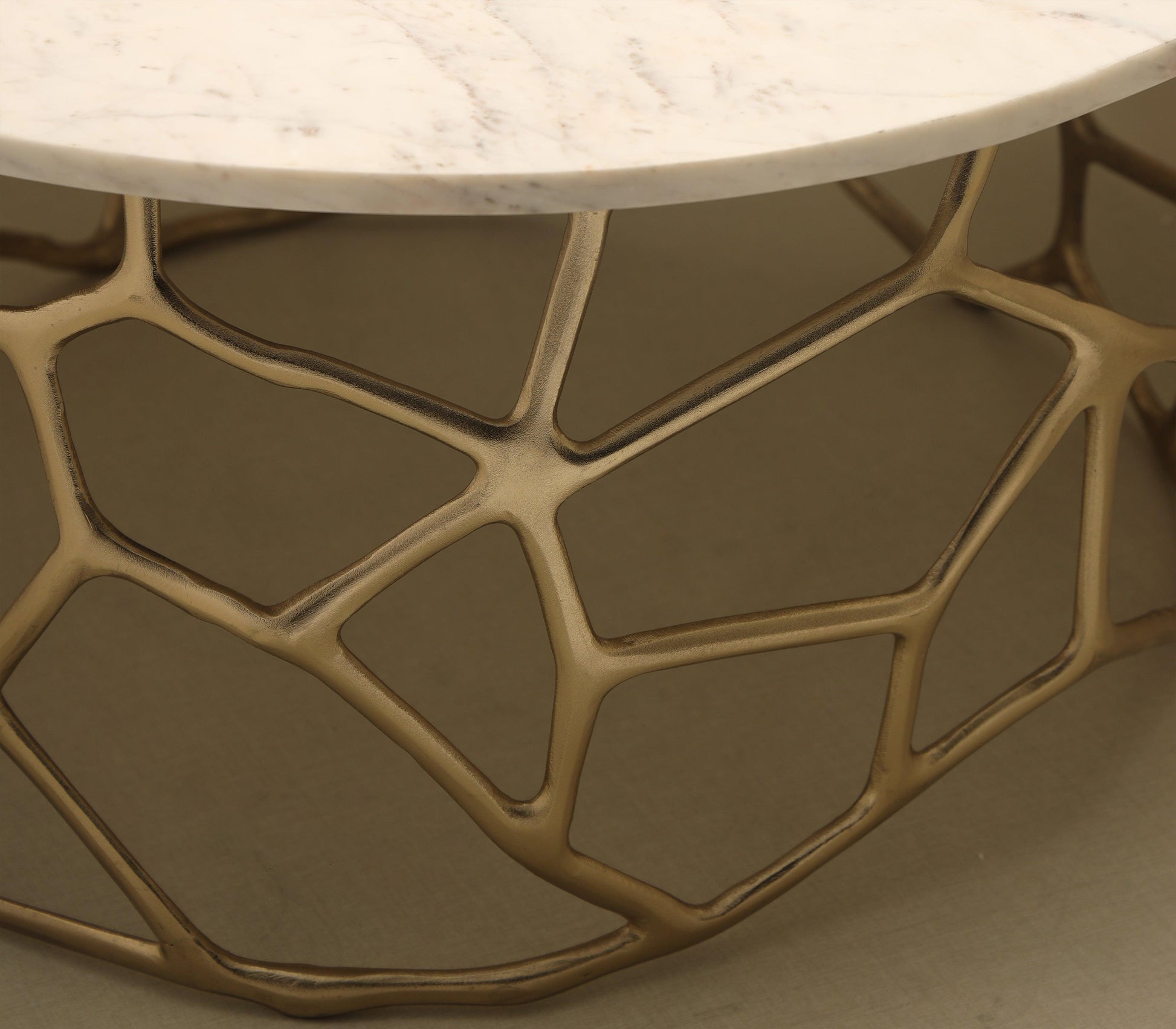 The Sacred Geometry Coffee Table in gold is a radiant blend of structure and soul. Its sculptural aluminum base draws from ancient sacred patterns, finished in a warm gold tone that contrasts beautifully with its pristine white marble surface. This marble center table serves as a stunning center table for living room, blending art and utility effortlessly.