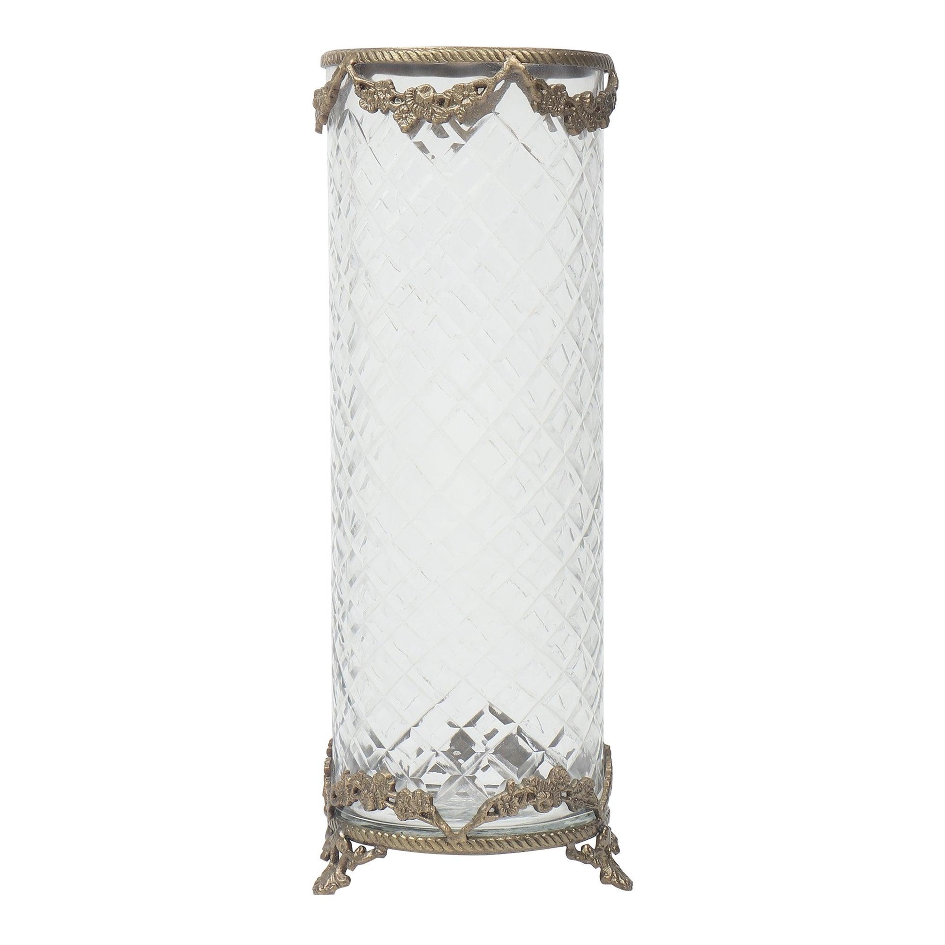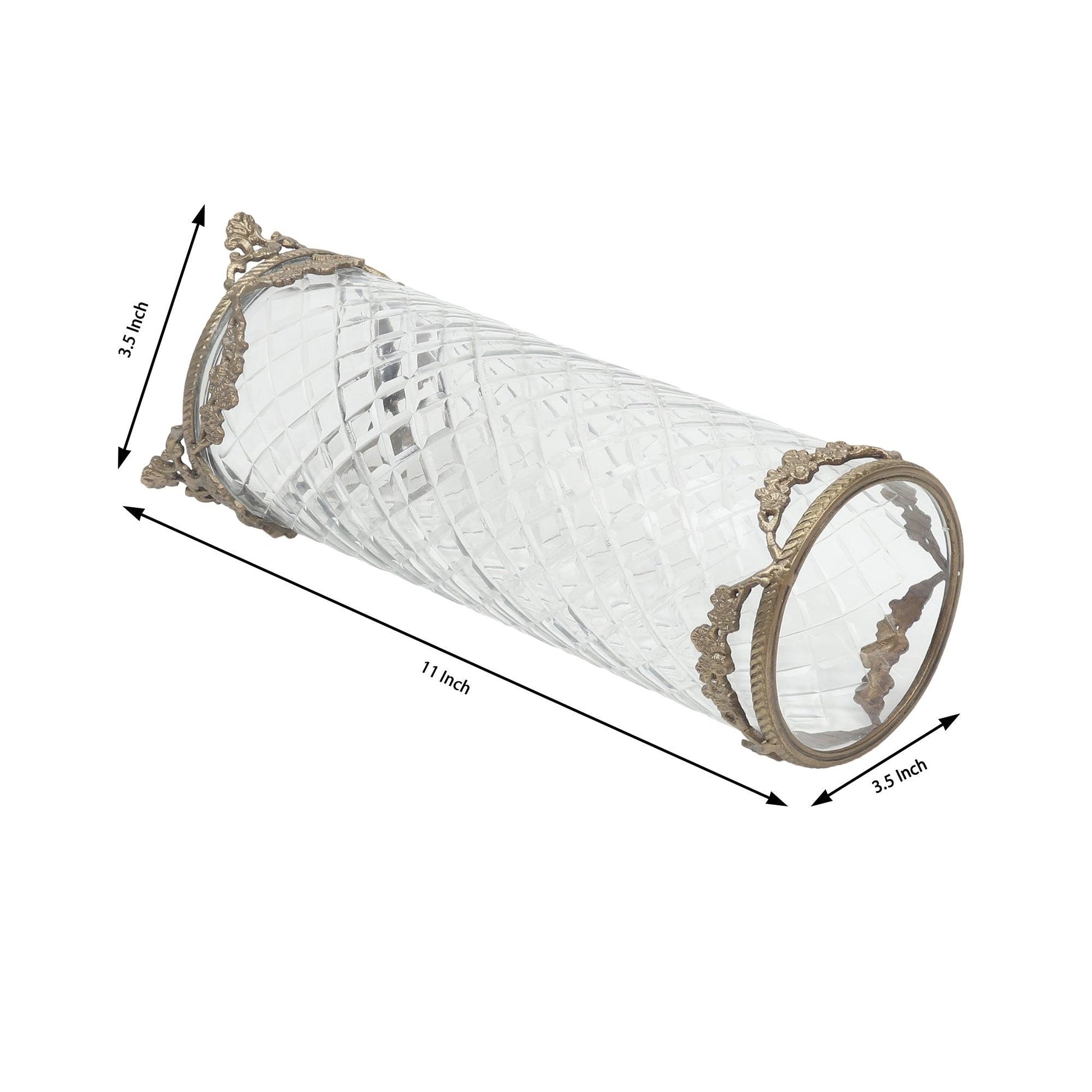 Introducing the Botanic Brass Trim Glass Vase, a captivating cylindrical masterpiece that beautifully blends nature-inspired design with timeless elegance. Crafted with clear glass, this exquisite vase features two antique brass rings adorned with intricate botanical motifs at the base and top. The botanic brass trim adds a touch of vintage charm to the modern cylindrical shape, creating a stunning fusion of styles. Embrace the allure of the Botanic Brass Trim Glass Vase, and let it become a statement piece that adds a touch of botanical beauty and refined elegance to your floral arrangements and interior decor.