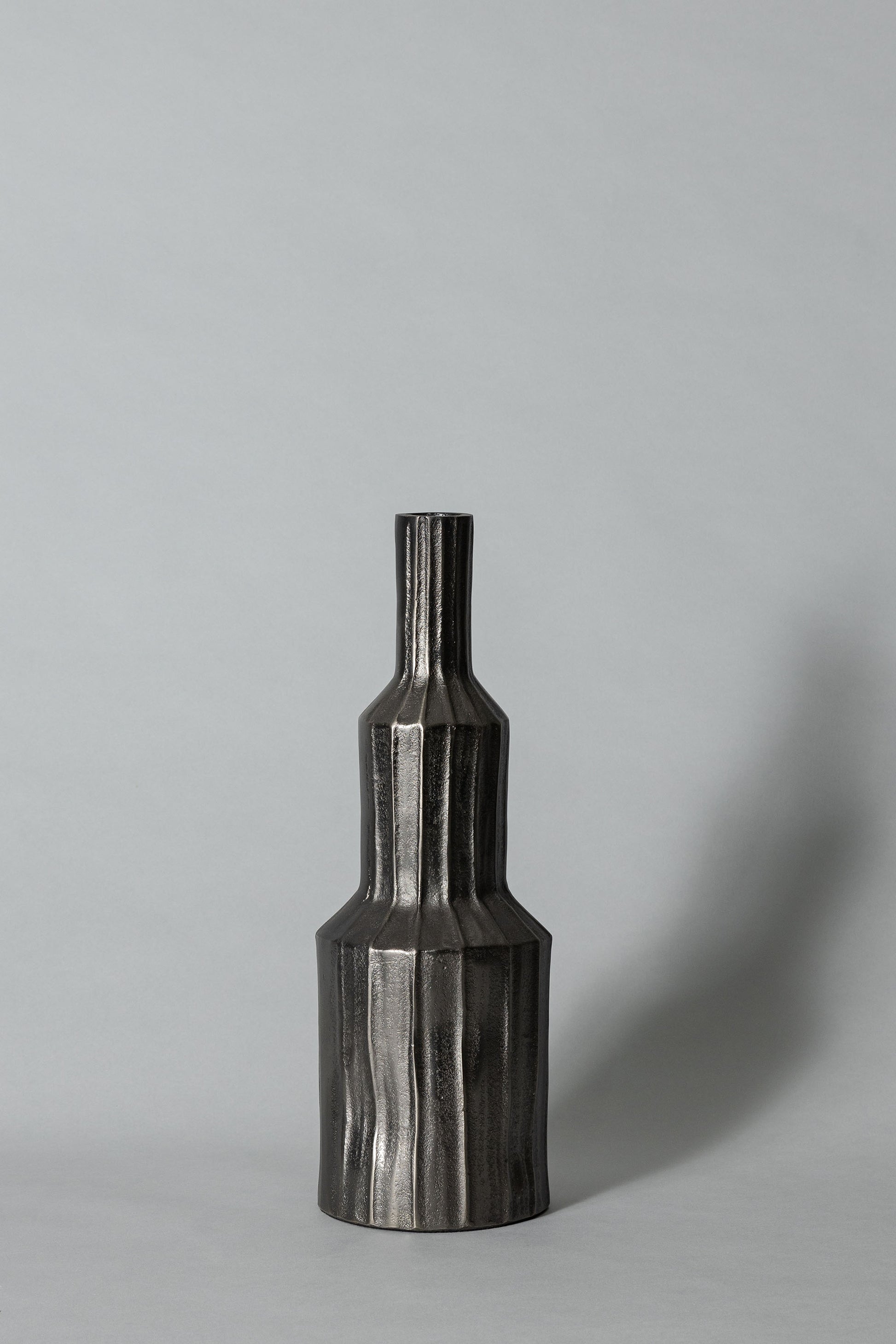 Shop Kenai Vase in cast aluminium with graphite finish a sleek modern accent perfect for festive styling with fresh or dried floral arrangements
