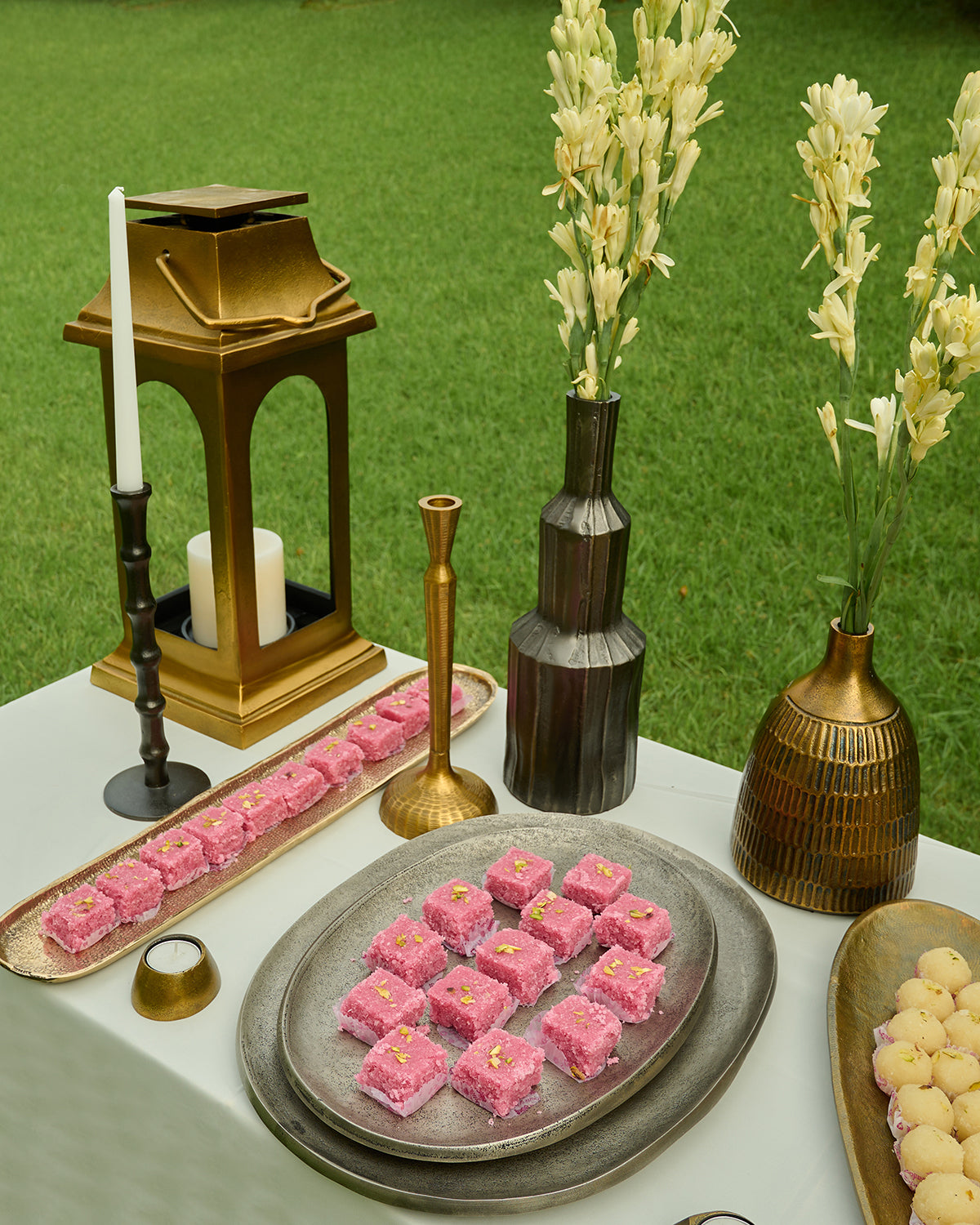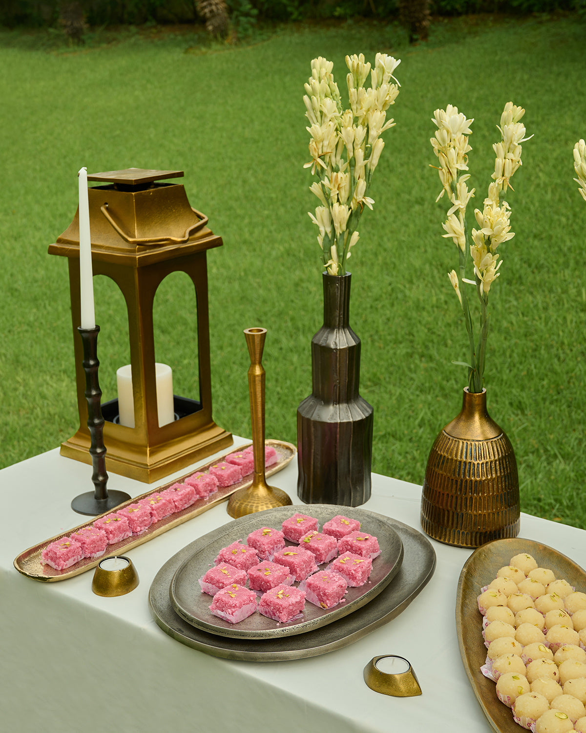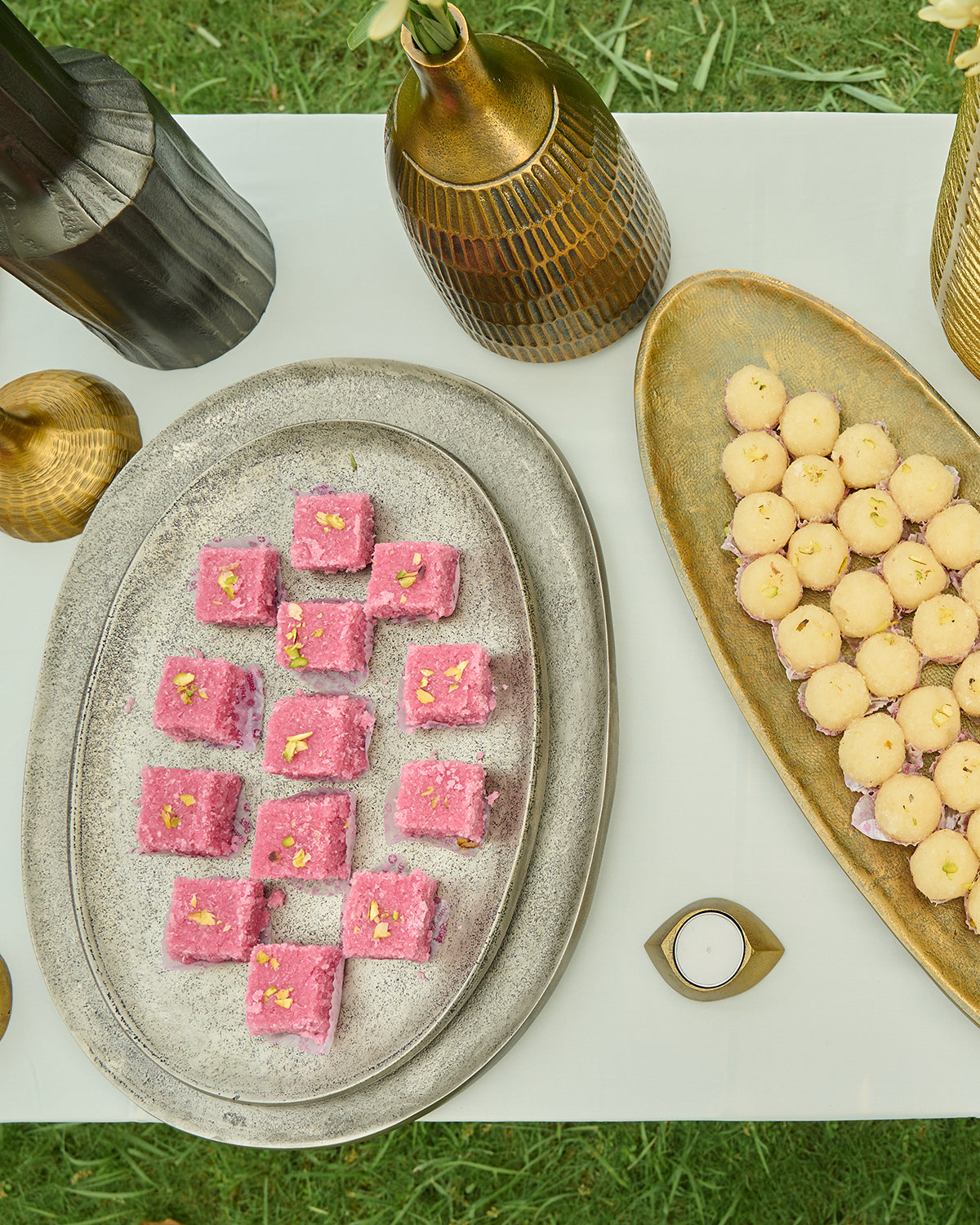 Shop Mati Trays in cast aluminium with antique nickel finish a pair of sleek versatile accents for serving gifting or styling luxury coffee tables.