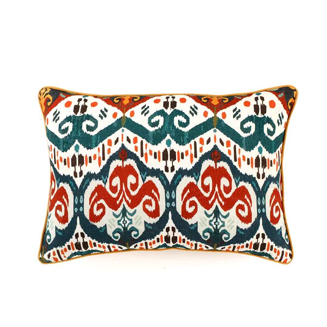 Elevate your decor with the stunning Fiona Cushion Cover, featuring a deep teal base adorned with intricate multicolored details. This cushion cover effortlessly blends vibrant colors with elegant design, adding a splash of sophistication and liveliness to your room. Crafted from durable, luxurious fabric, the Fiona Cushion Cover is both visually captivating and comfortable, making it a perfect addition to any space seeking a touch of modern flair.