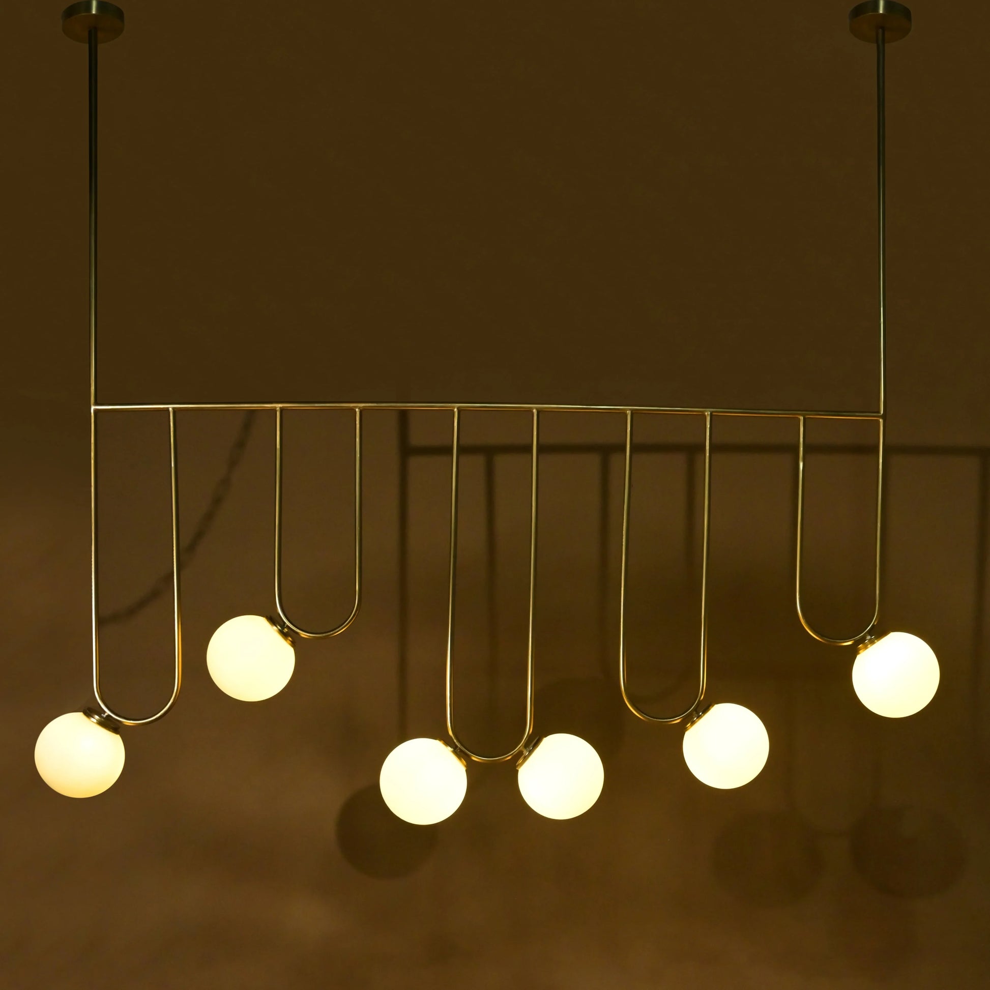 Add dramatic elegance to your home with the Aure Pendant Light, a sculptural ceiling lamp that fuses midcentury modern design with industrial charm. Featuring multiple globe bulbs suspended at varying heights, this statement piece casts a warm, ambient glow over your dining table, living room, or foyer. Crafted in luxurious EPL Gold iron, it works beautifully above a tailored sofa, dining ensemble, or modern seating area, enhancing vertical space with visual rhythm and style.
