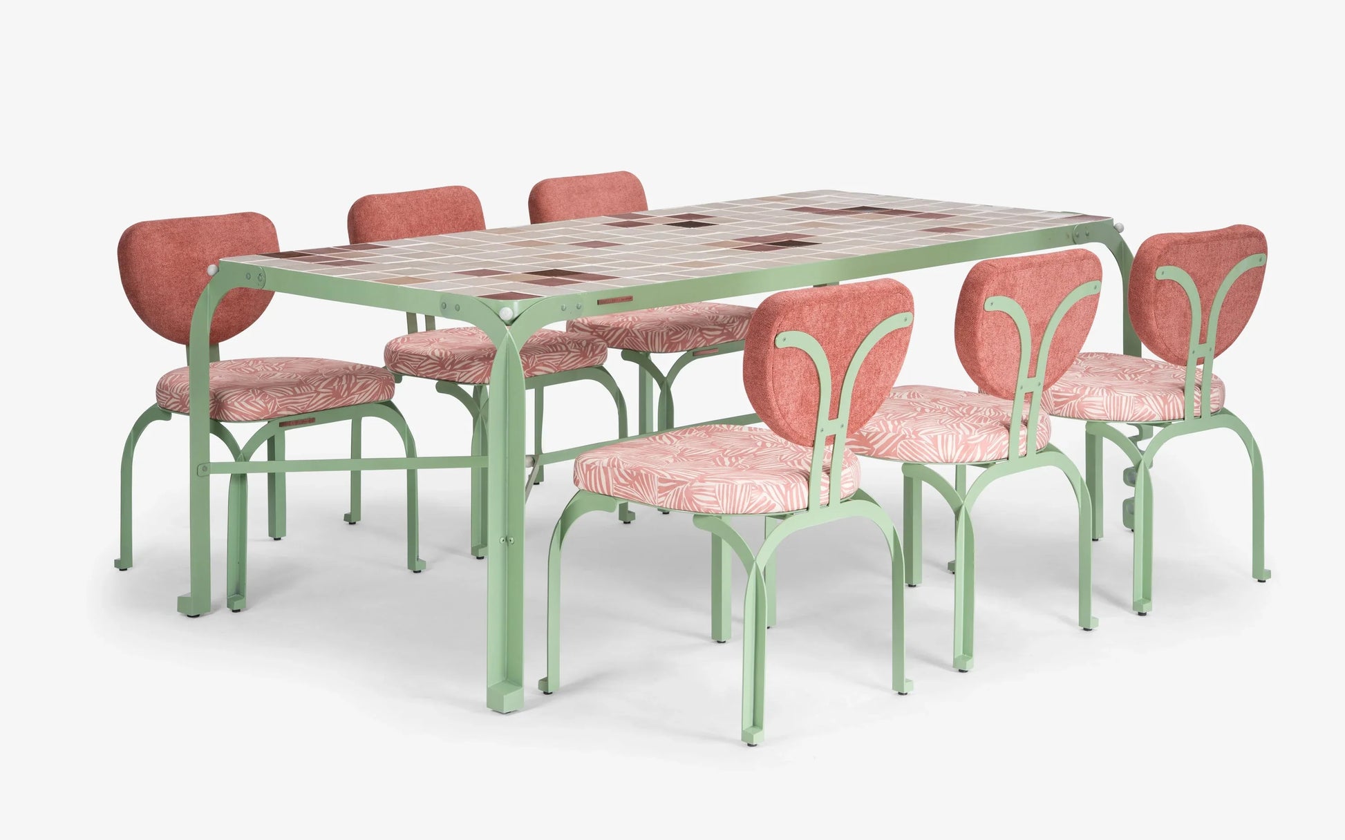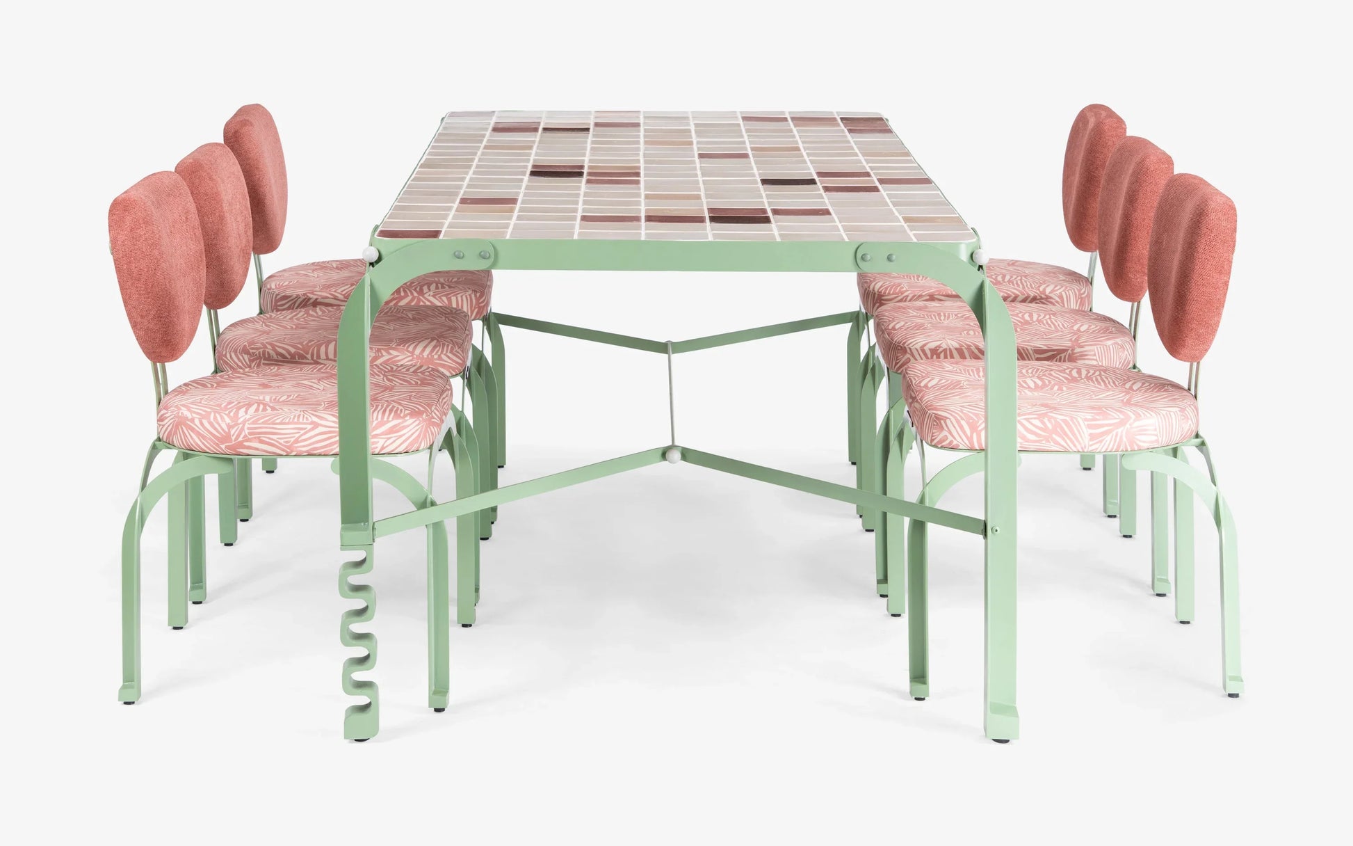 Experience Dastoori dining: The Dining Chair offers surprising comfort with its structured design and signature springing backrest, balancing function with movement. Complementing it, the Dining Table showcases a strong, minimalist stainless steel frame topped with a beautiful, hand-laid custom tile. Cast aluminum leg details highlight the exquisite craftsmanship. Together, they create a wonderfully inviting and stylishly contemporary dining experience, embodying the Dastoori collection's unique spirit.
