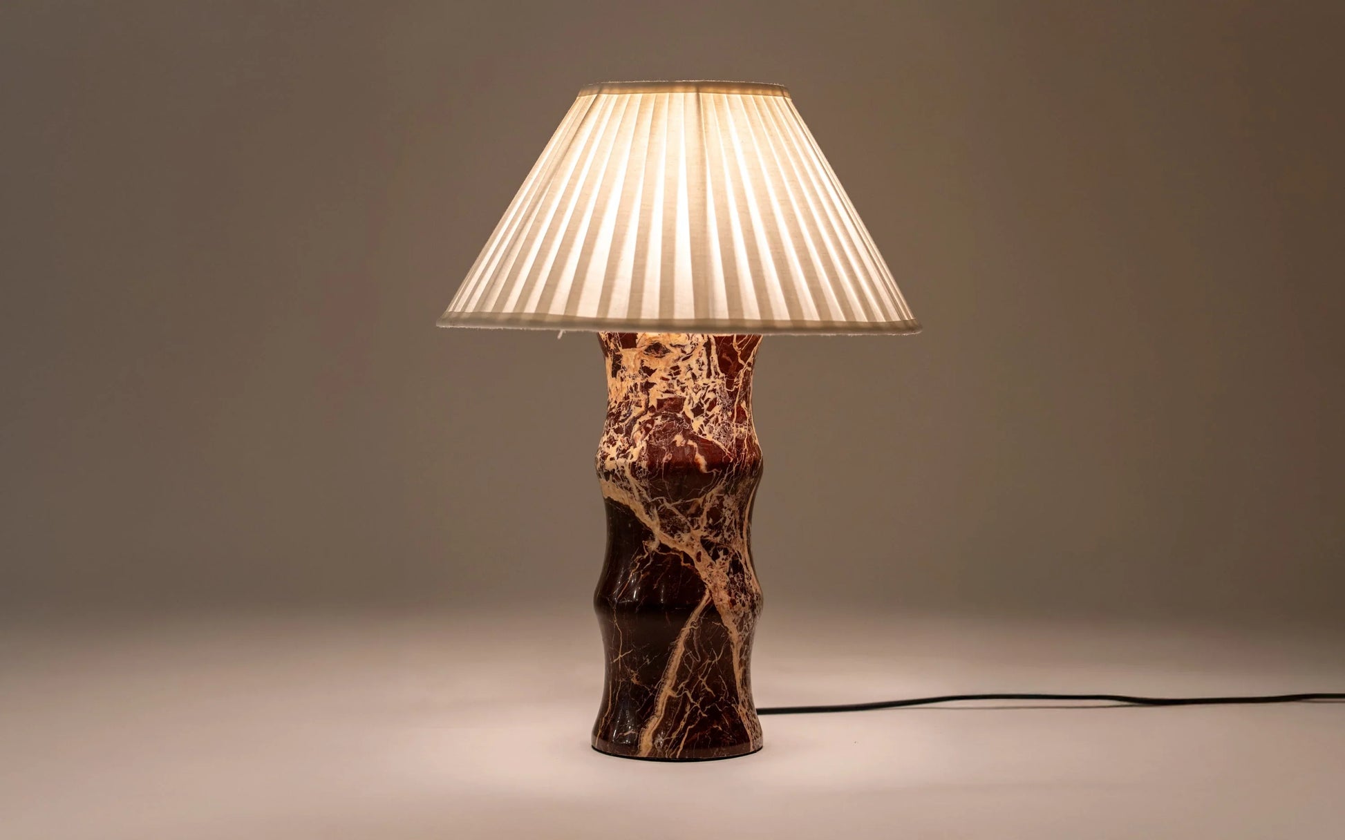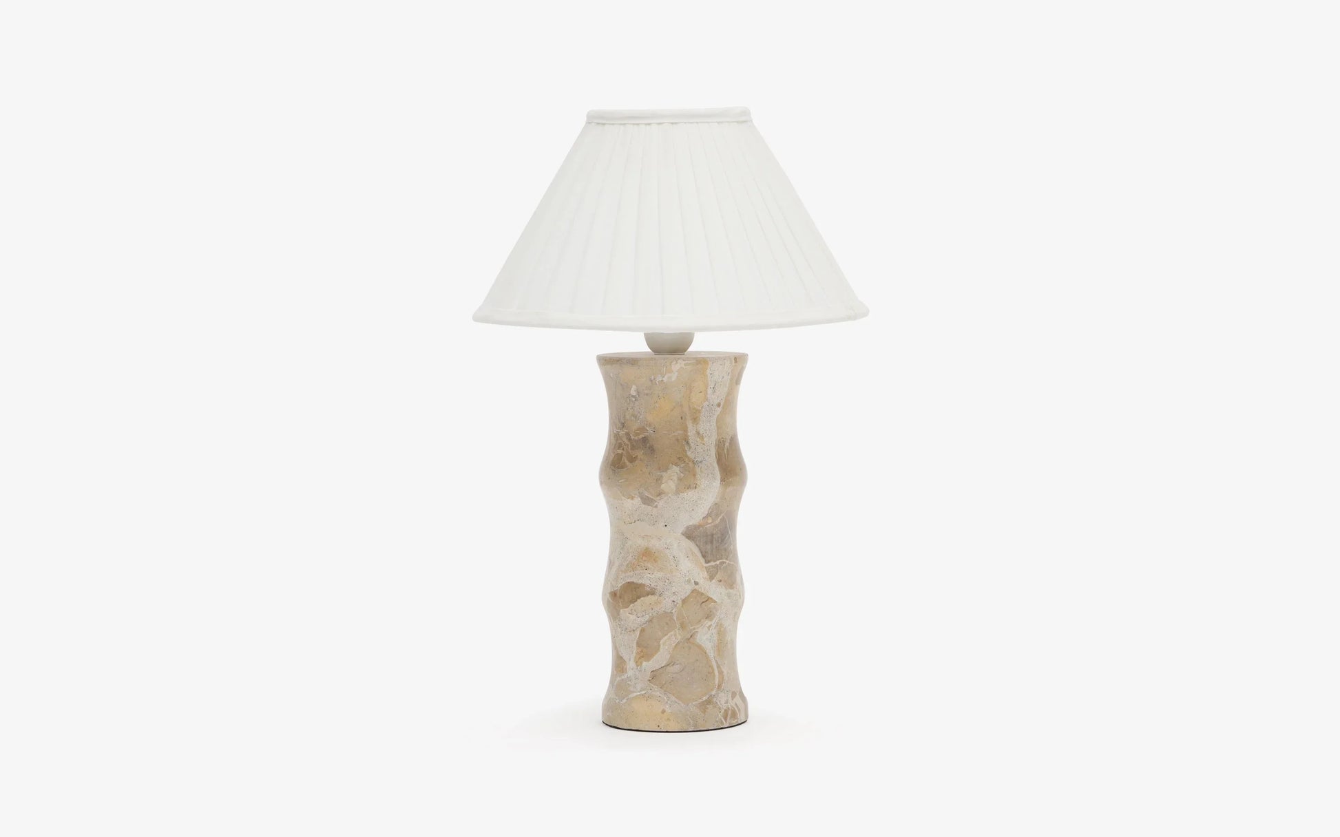 A soft pleated shade meets a carved stone base in the Halo Small Table Lamp. This charming piece brings texture, warmth, and timeless form to layered bedside styling.