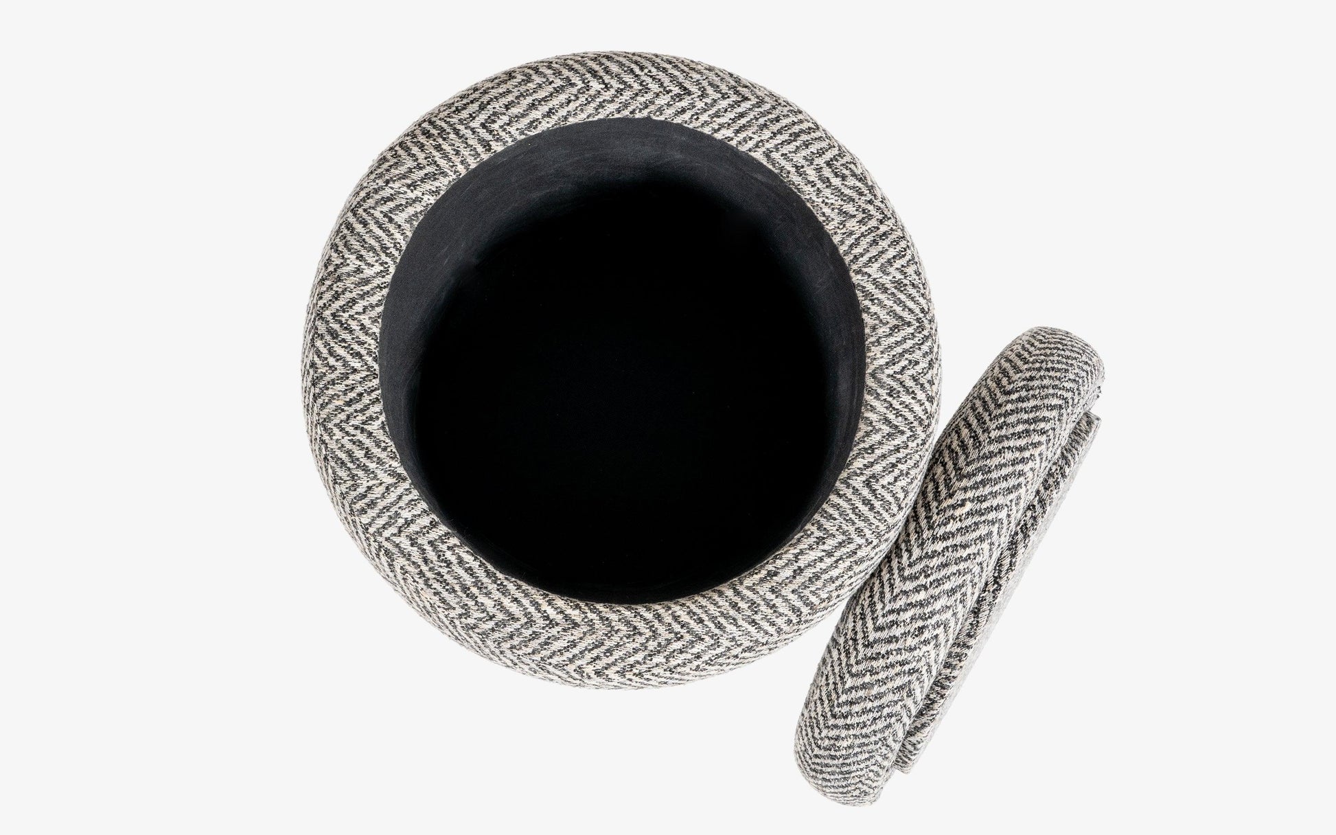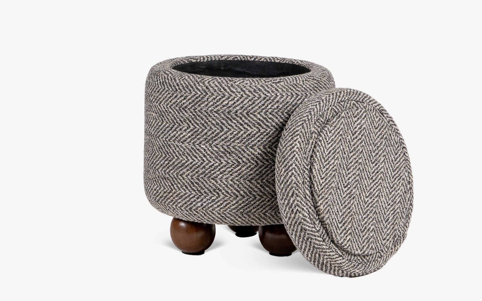 The Jupiter Pouf, inspired by the largest planet in our solar system, features a robust design and textured upholstery that mimics the swirling storm bands of Jupiter. Its legs are elegantly shaped to emphasize the grandeur of this celestial inspiration, making it an ideal addition to any space that blends style and functionality.