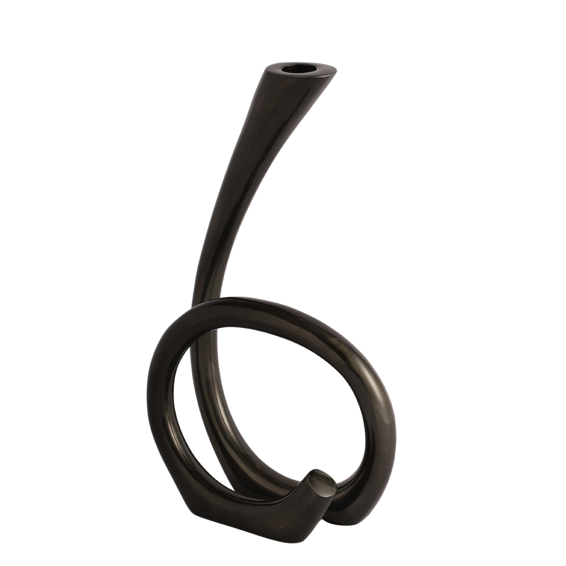 Striking and luminous, the Flame Twisted in Black candle holder unfurls in a fluid metallic loop, echoing the rhythm of a dancing flame. With its radiant silver sheen and sculptural allure, it infuses spaces with drama, elegance, and a touch of modern poetry