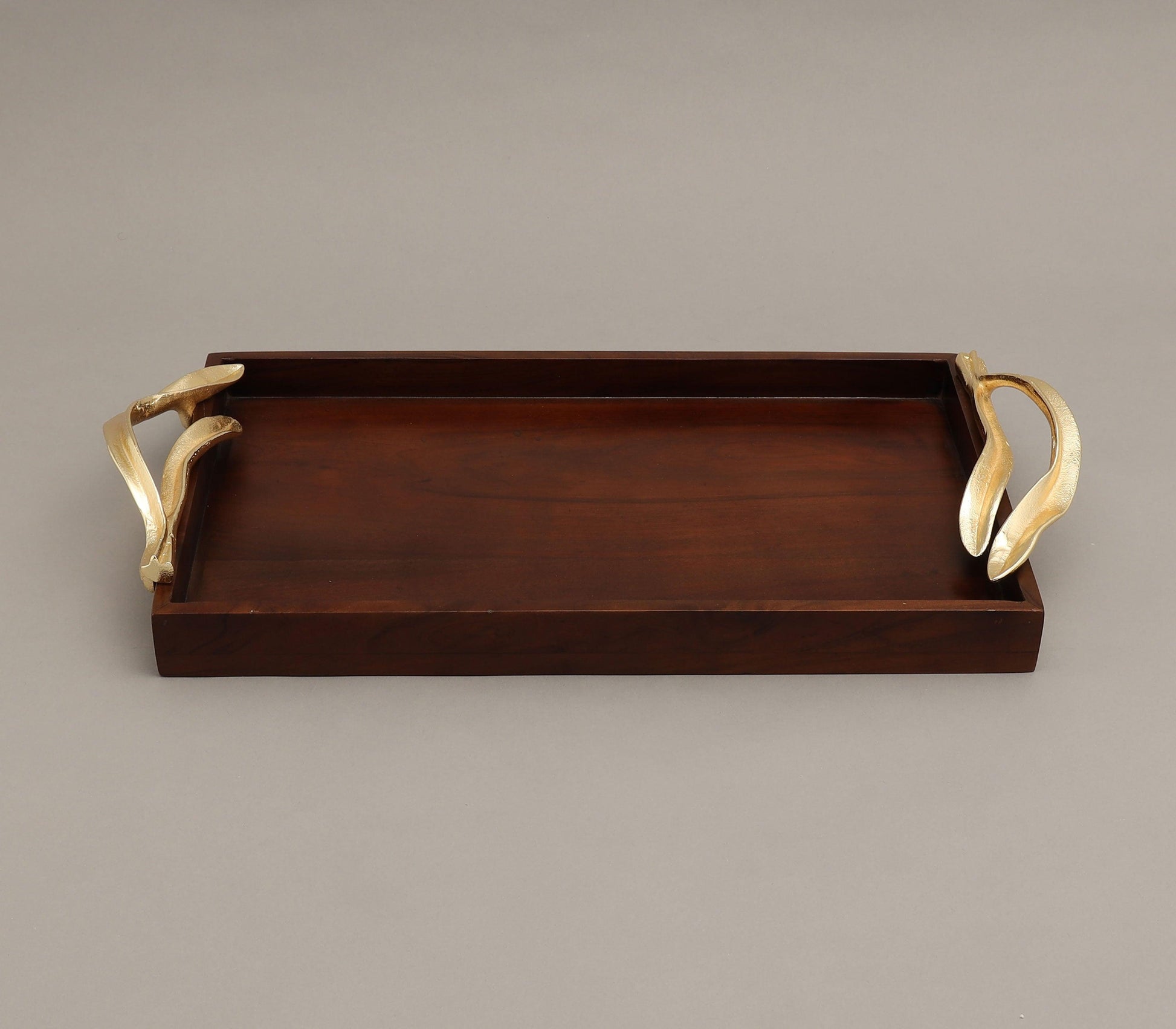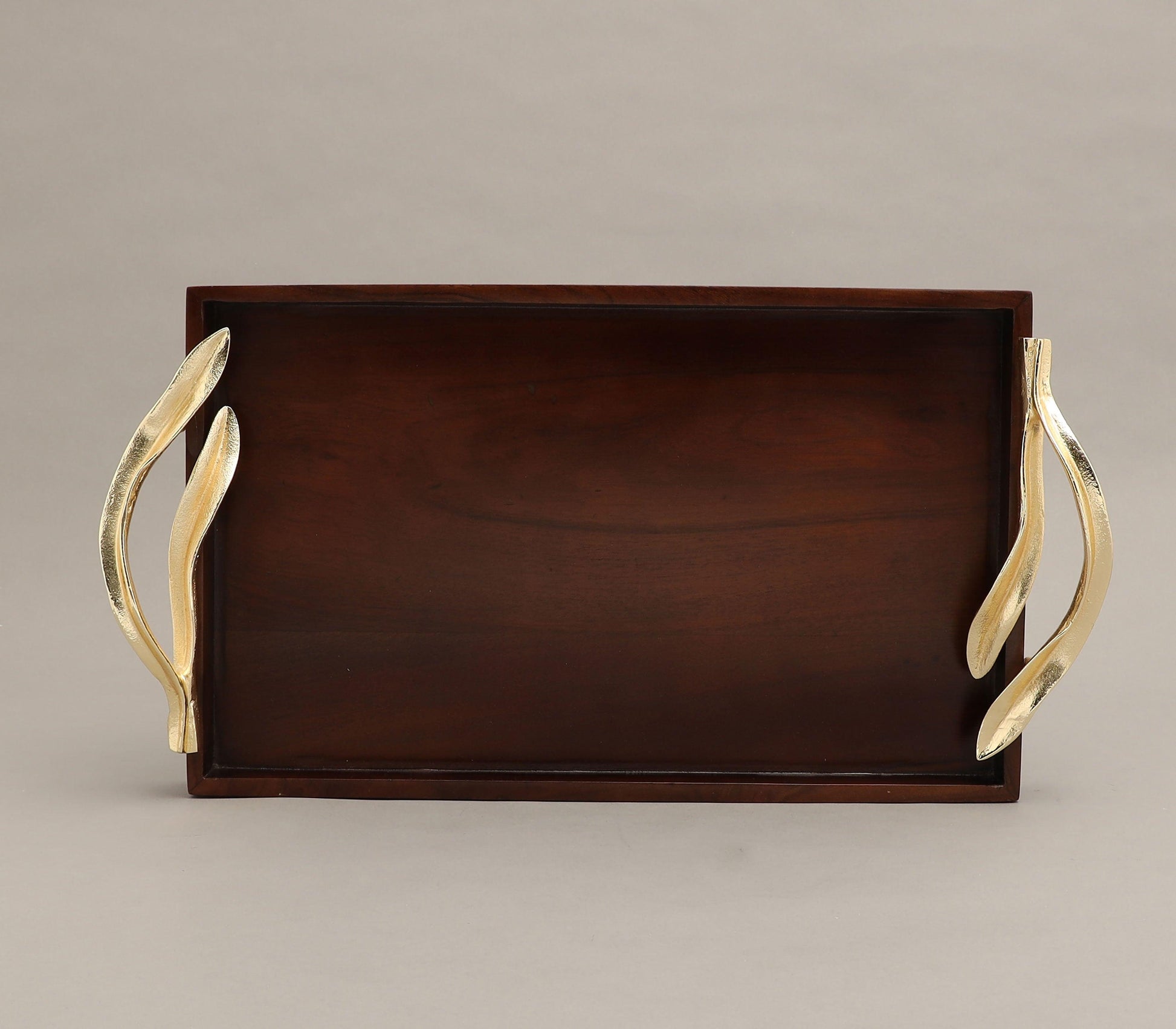 Delight your family and friends with this stunning wooden serving tray. Expertly crafted of wood and gold polished aluminium handles for a perfect grip, this serving tray is a great way to impress any guest.