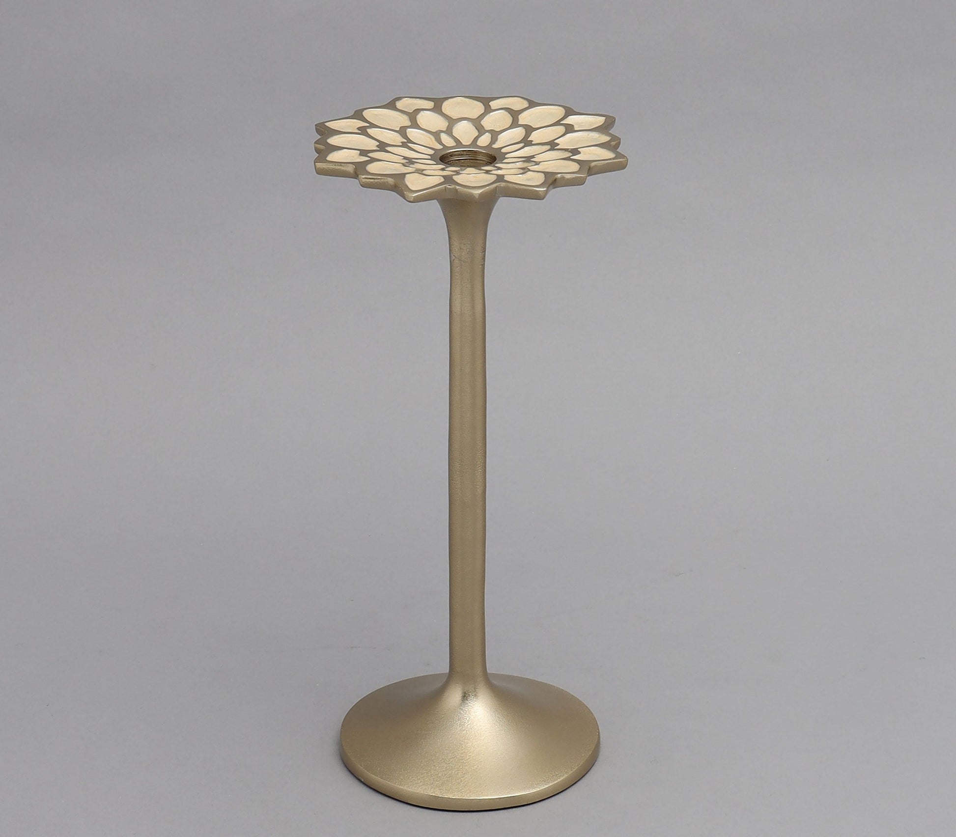 Brighten up monotonous areas in your home with this moroccan taper pillar candle holder. Exquisitely crafted with a gold finish on aluminium and ivory enamel work. Place the holder as a centerpiece on your dining table or arrange with different sizes of candle holders for an elevated and illuminous display.