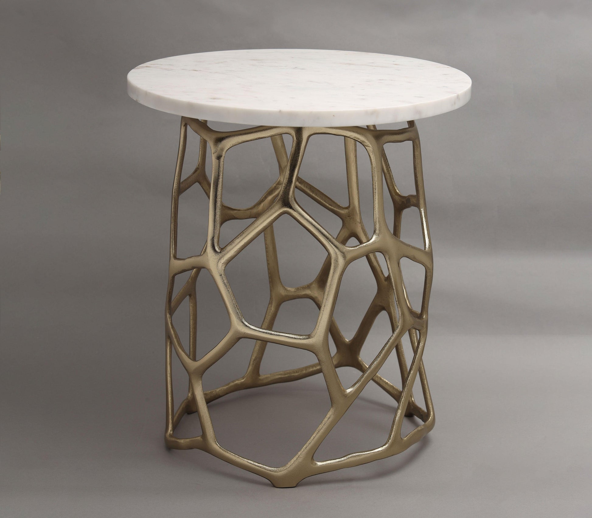 This Sacred Geometry side table brings structure and style to any space with its gold-finished aluminum frame and pristine marble top. Designed to blend contemporary lines with bold shapes, it’s the ultimate statement end tables piece for design lovers. Perfect as side tables for living room or luxurious corner table for living room placements, it works seamlessly across your home. Whether near a sofa or beside the bed, use it as a chic small table, elegant tea table, or functional sofa side table. A refined addition to your collection of high-end side tables and must-haves like small side table designs.