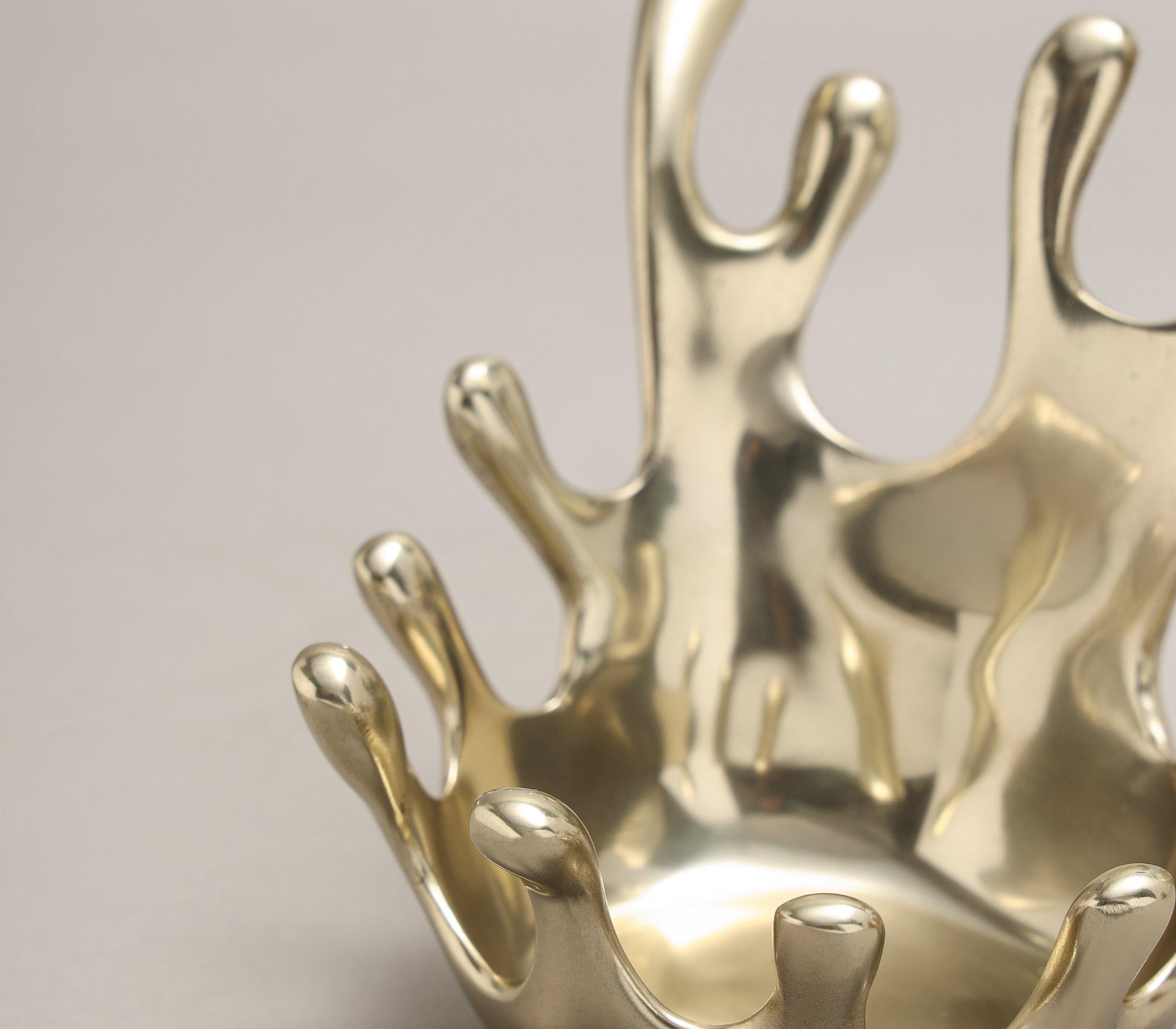 Give a boost of style to any table by adding the unique splash pillar candle holder. The splash design is an artistic marvel and the gold finished almunium gives the candle holder an opulent look, taking one back to the olden times with a lit candle.