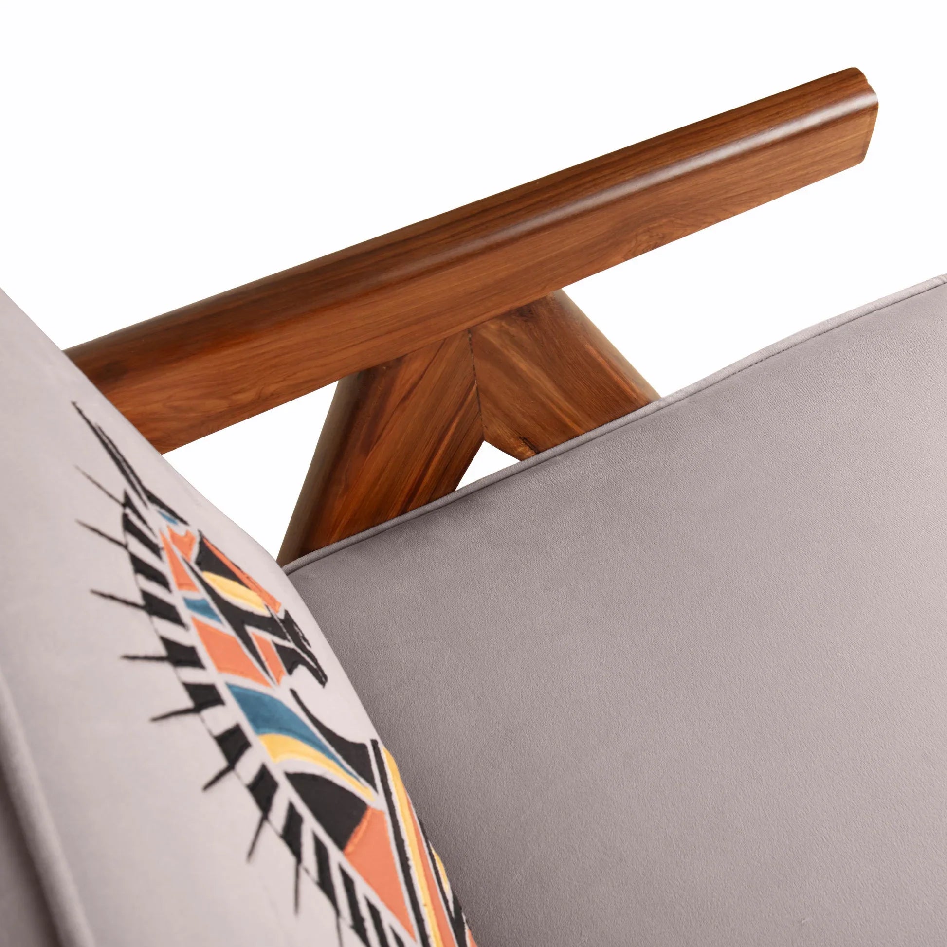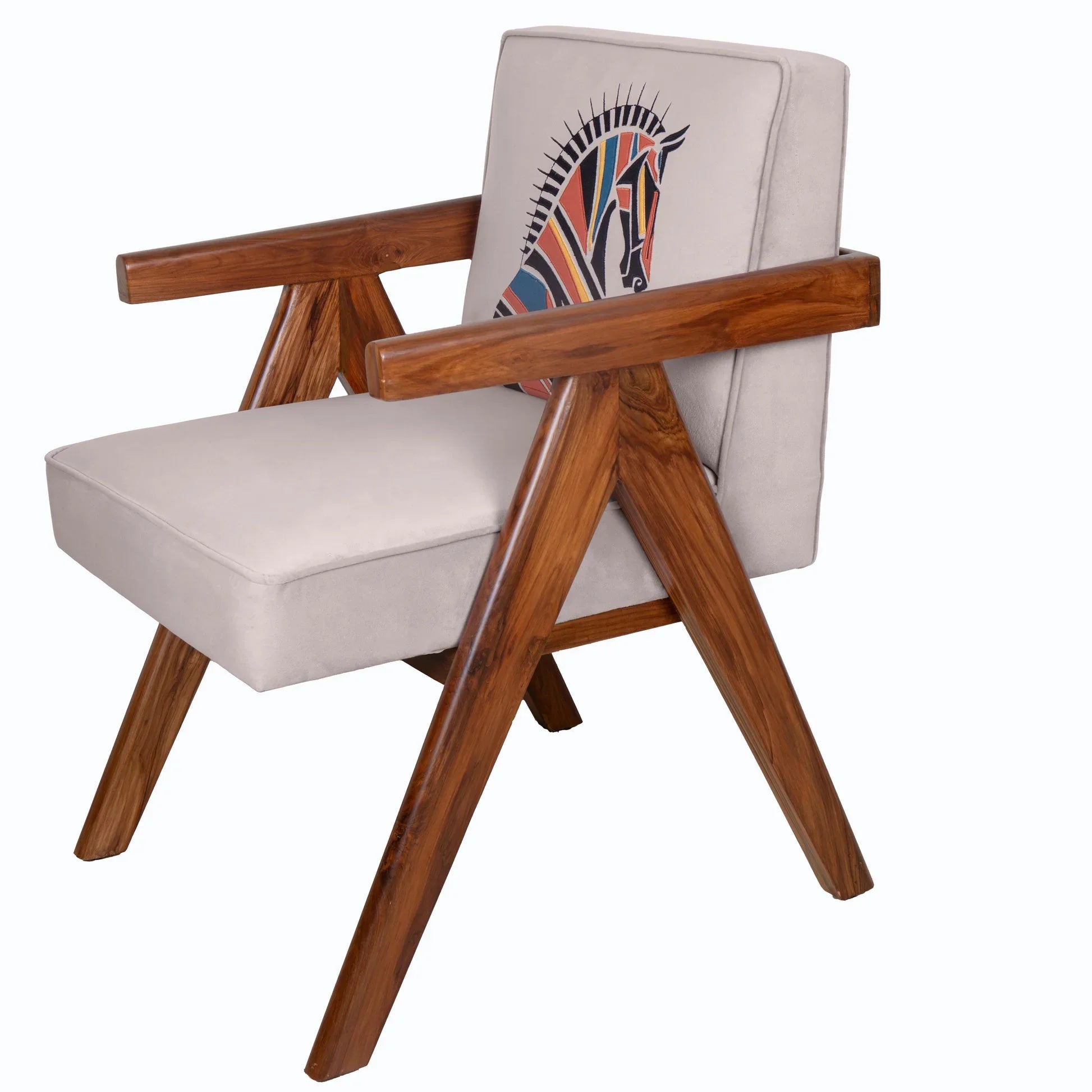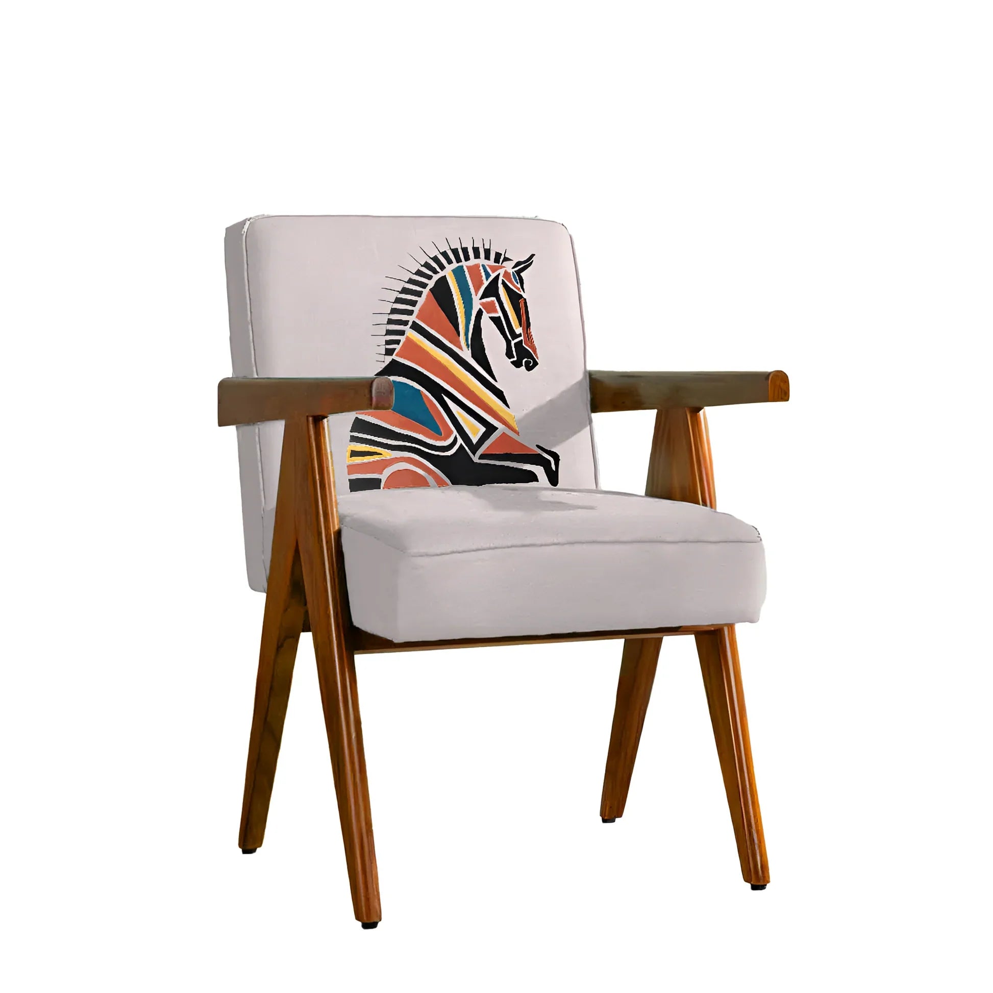 The Derby Delight Armchair is a testament to contemporary design and expert craftsmanship. Meticulously constructed from solid teak, its defining feature is a captivating galloping horse motif, not merely printed but meticulously hand-appliquéd, showcasing dedication and artistry.
