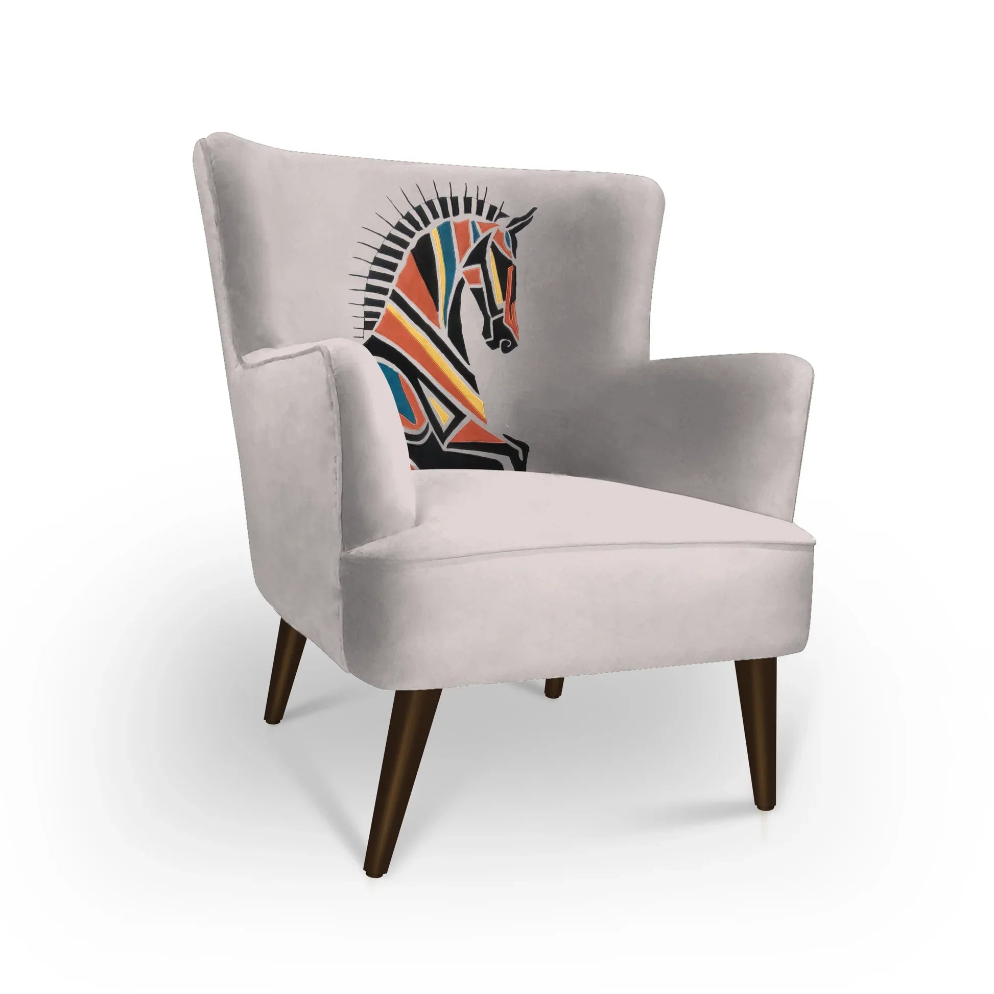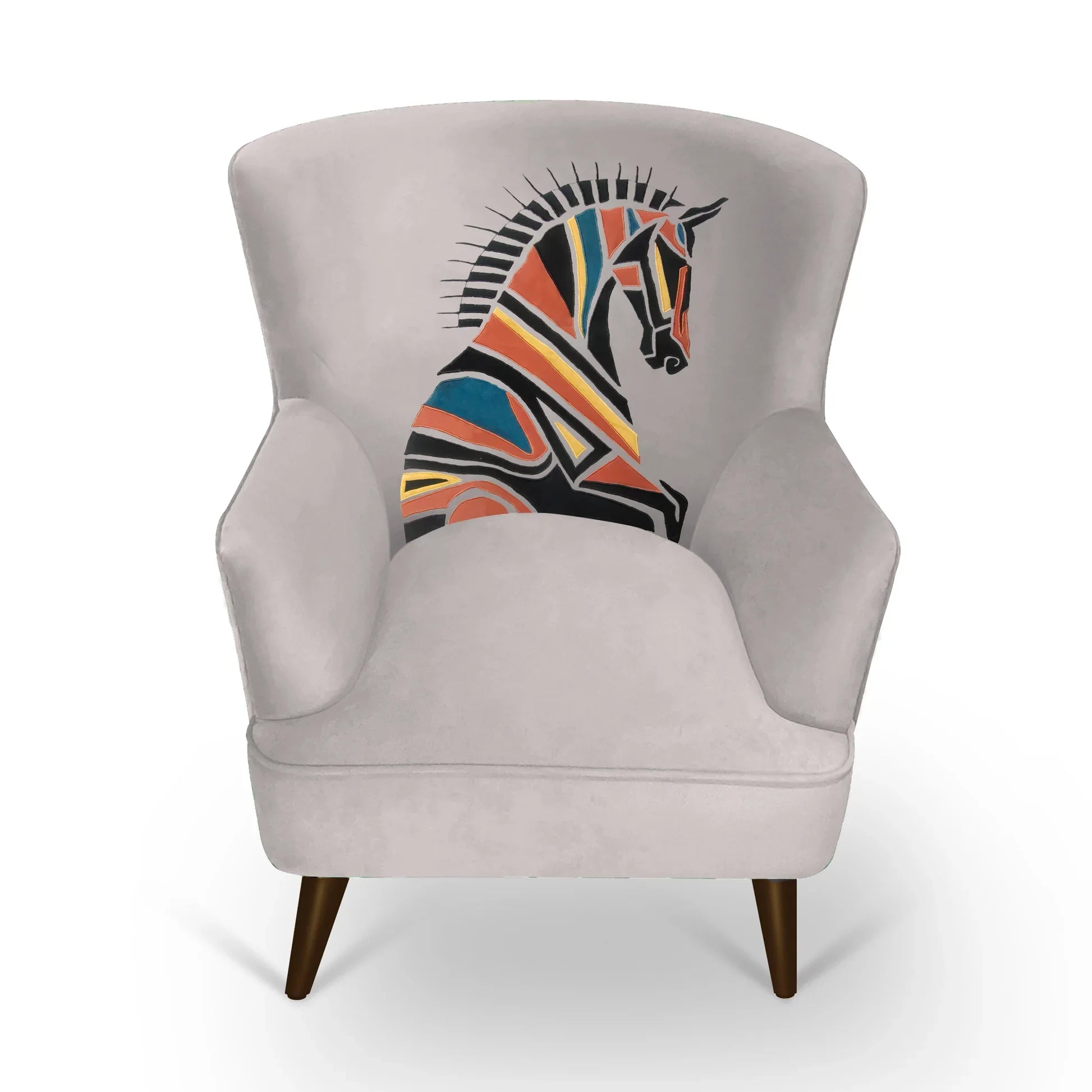 The Mustang Chair blends modern design with equestrian aesthetics. Handcrafted with a striking horse motif appliqué, it adds bespoke artistry to any space. Inspired by wild mustangs, this chair is a focal point, symbolizing strength and liberation. It features a sleek silhouette made from premium, sustainable materials for comfort and durability. The intricate horse motif, with its flowing mane and sculpted lines, is meticulously stitched by artisans, offering rich texture and depth. Versatile, it enhances living rooms, studies, luxury boutiques, or hotel foyers, serving as a timeless investment in comfort, style, and art.