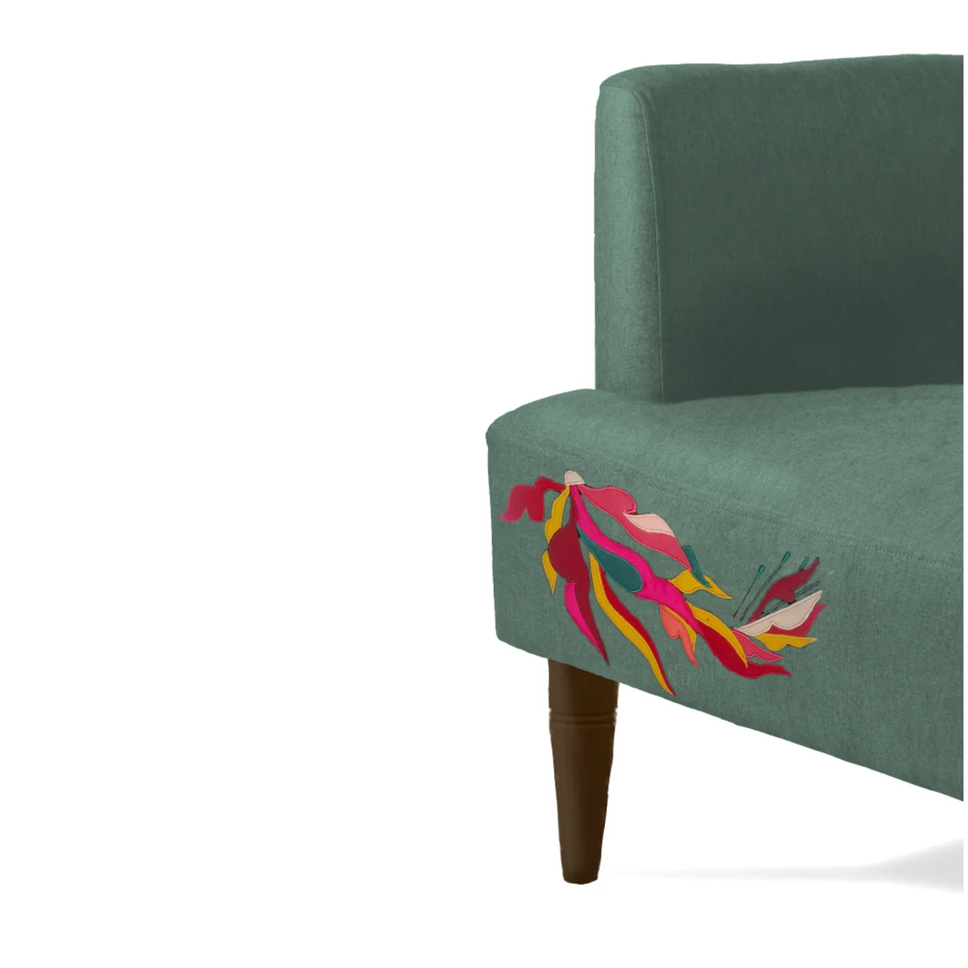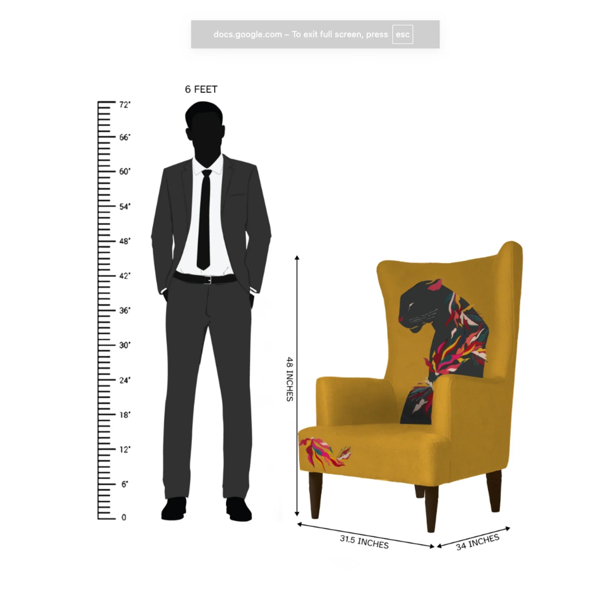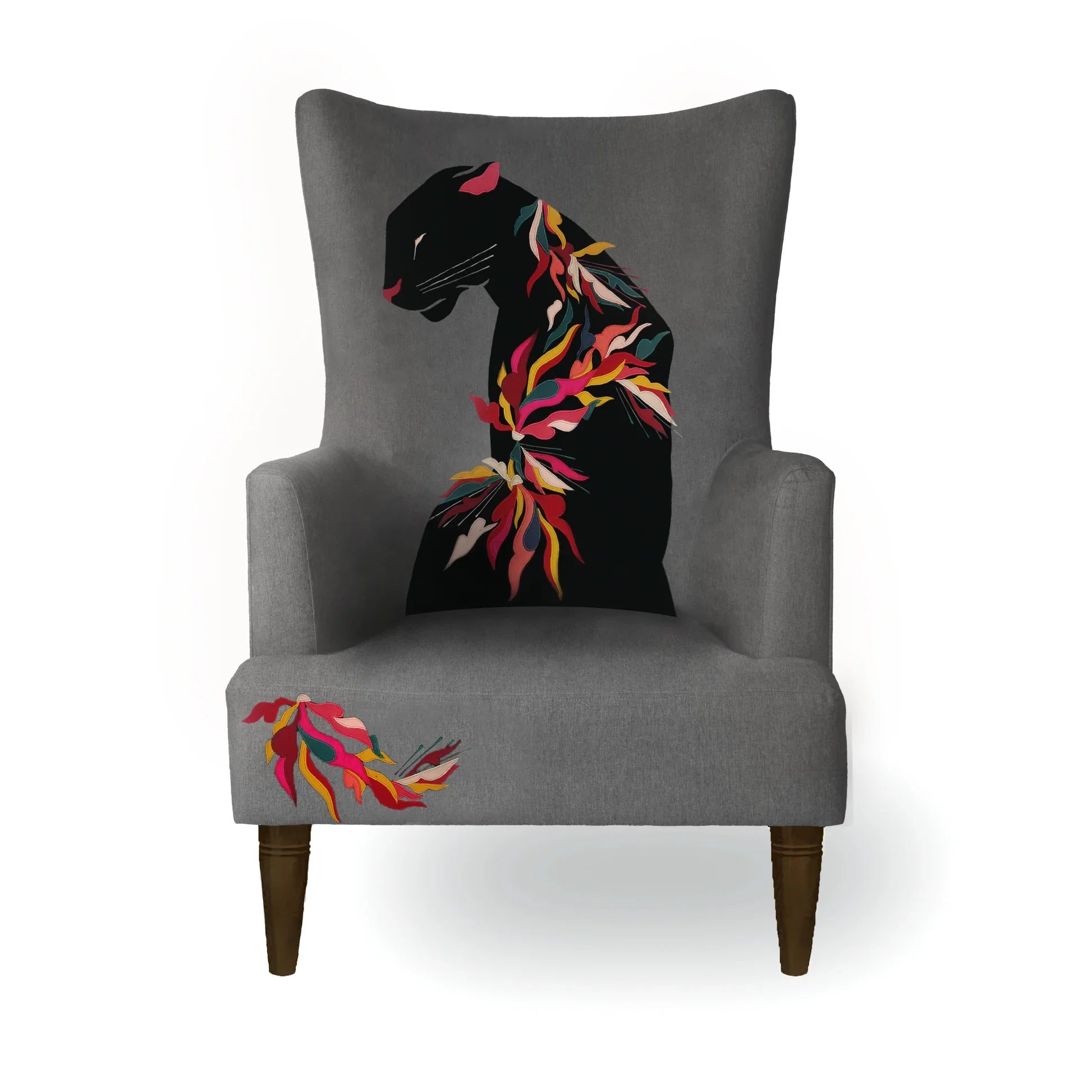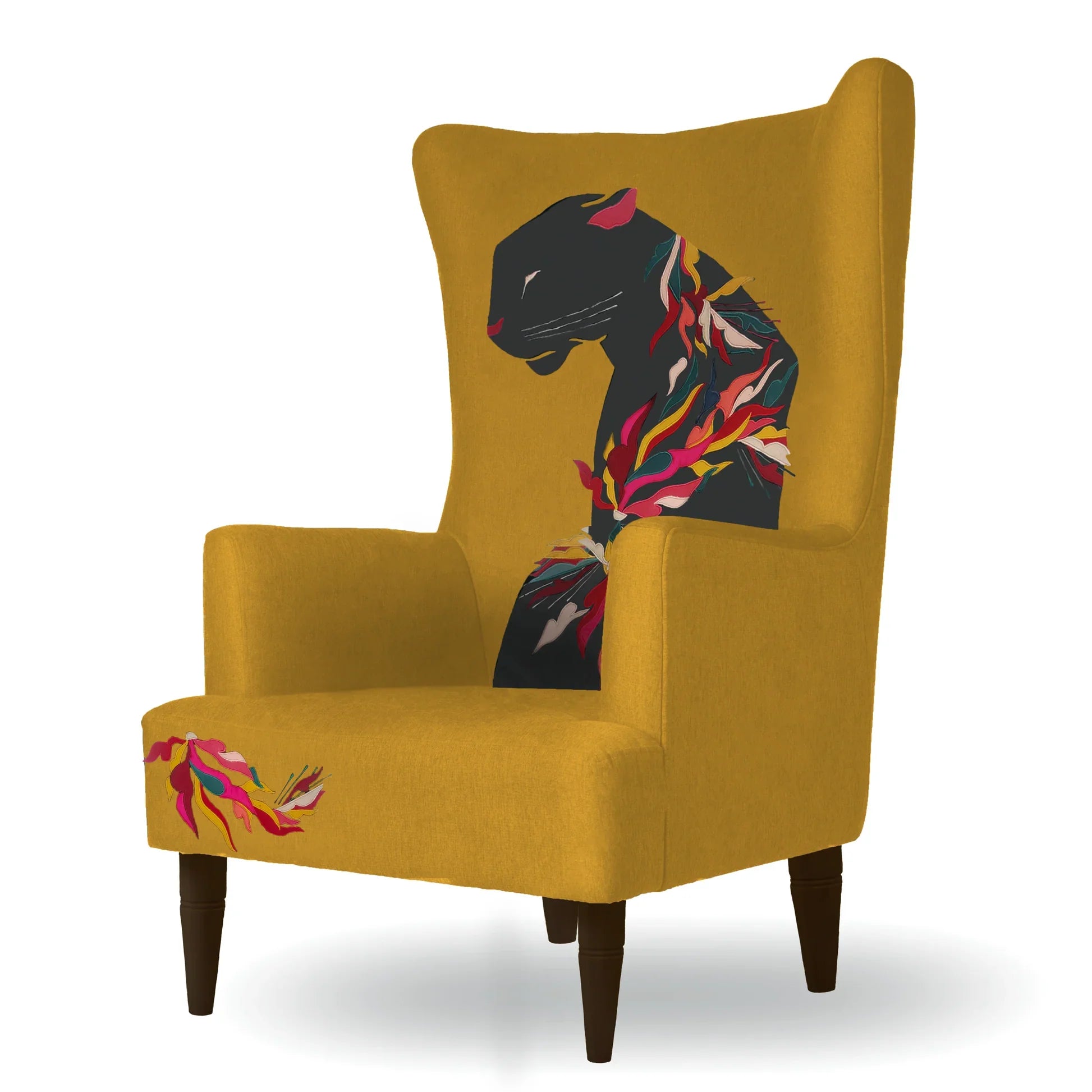 The Regal Roar wingback chair presents a magnificent high-back design, epitomizing sophistication and unparalleled comfort. This extraordinary furniture piece is distinguished by its exquisite panther motif, meticulously rendered through applique work on rich upholstery. Every detail, from the panther's piercing gaze to its majestic poise, is executed with exceptional artistry, establishing this chair as a true statement piece that commands attention.