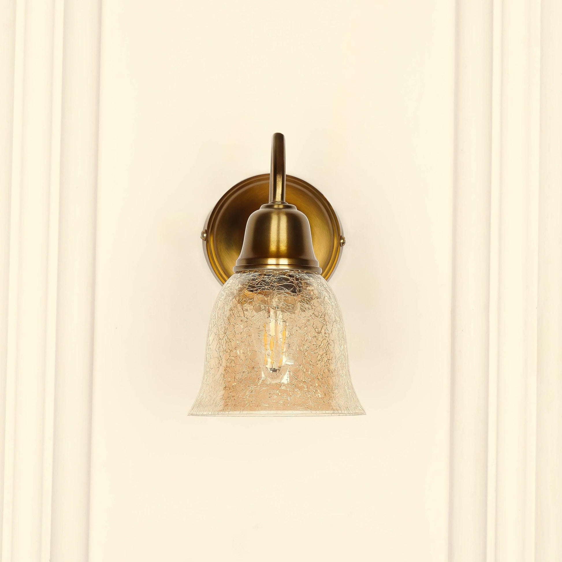 Brass Antique Finish Curved Down Wall Lamp with Cup Glass Crackled Golden Luster Shade