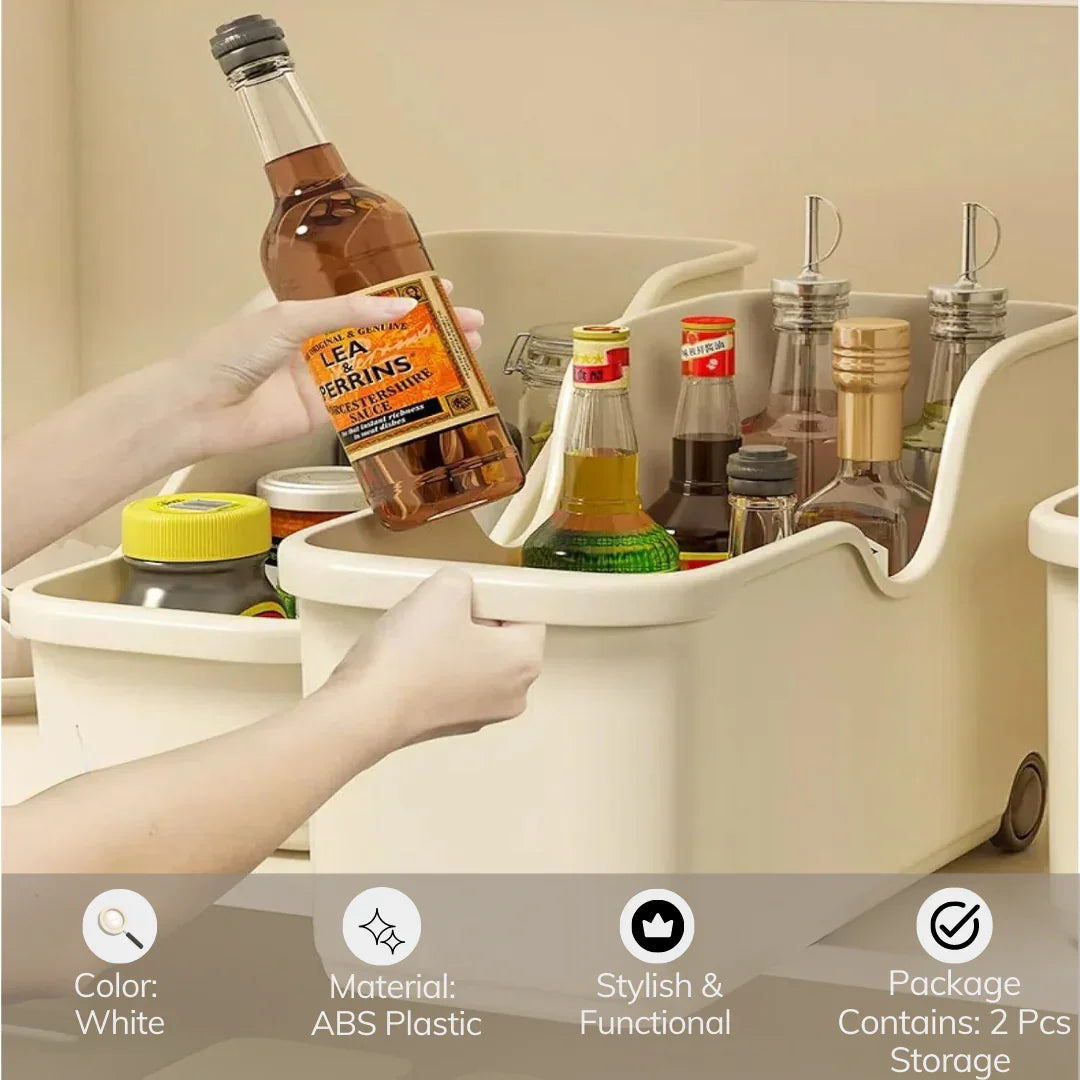 Storage Basket With Wheels | Multi-Purpose Portable Storage Organiser for Cosmetic| Under Sink Organizer (Set of 2)