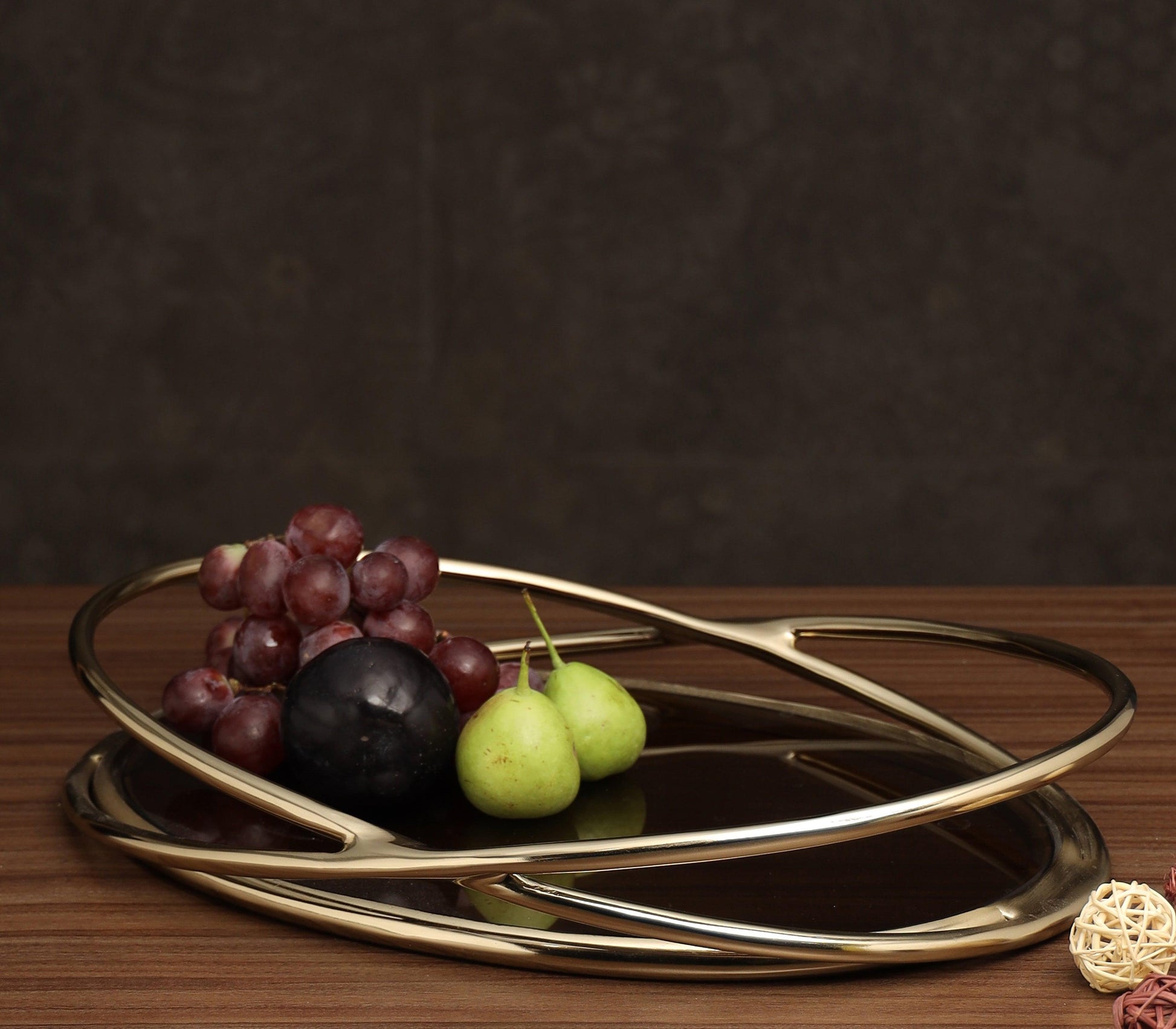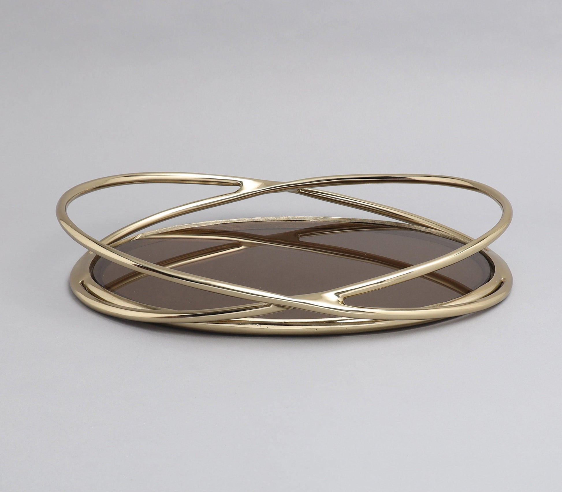 A testament to good design, the resplendent serving tray is a charming and exuberant addition to your serveware. Hand casted in aluminium with a beaming gold finish and brown glass for a stark contrast. This tray is a stunner on the dining table or the bar counter.