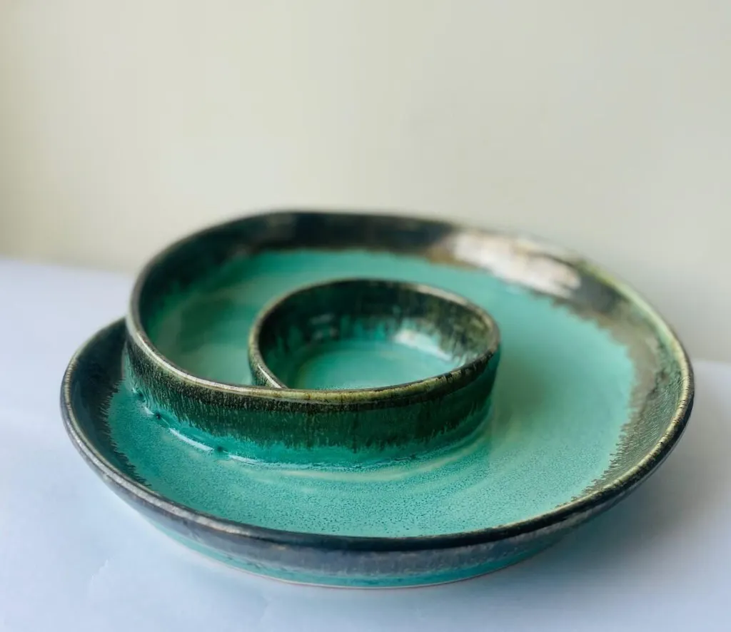 Sea Green Ceramic Dip Platter Serving For Tableware & Serveware
