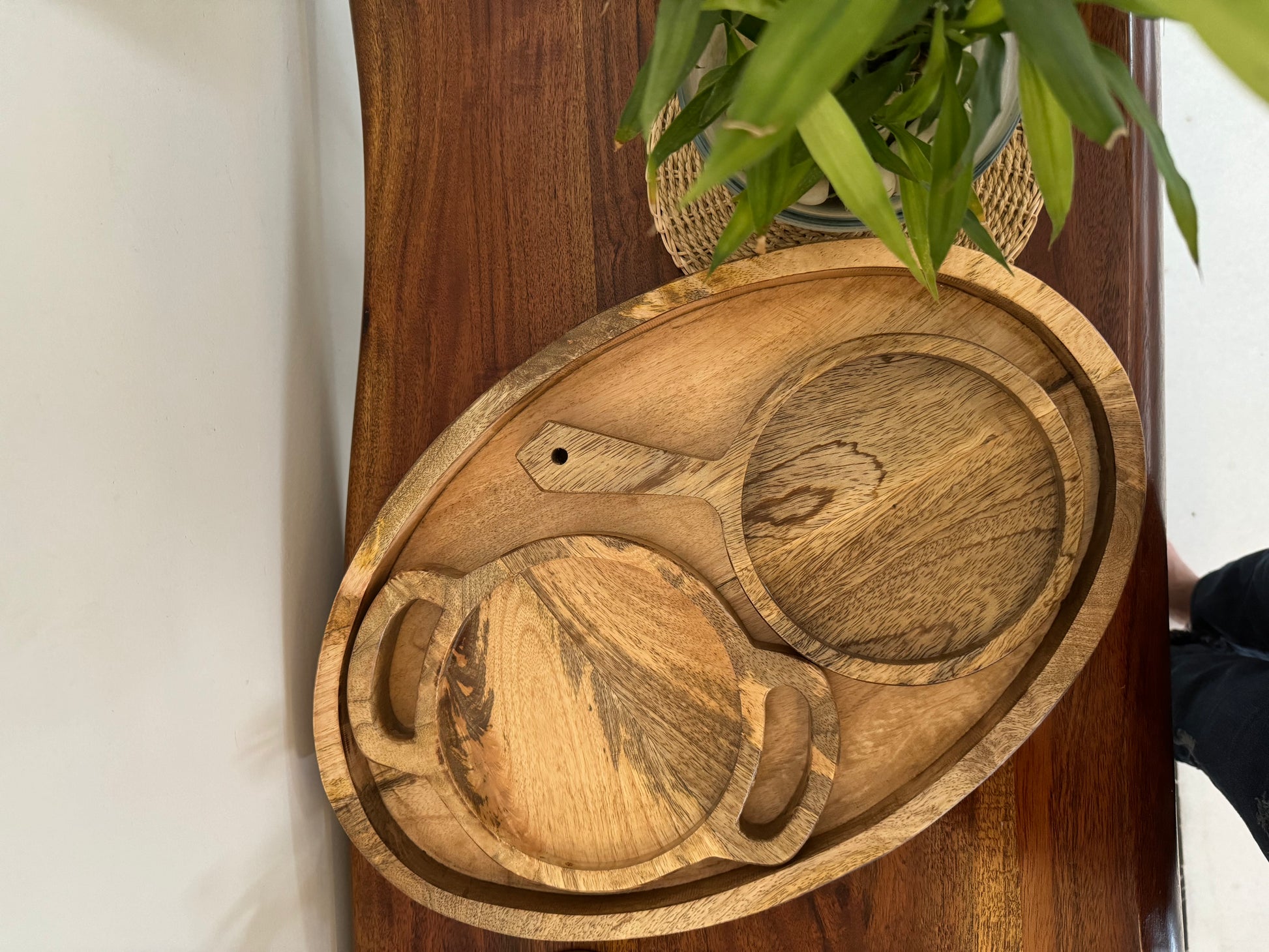 Enhance your dining experience with our Symphony Plates, a beautiful collection of decorative plates that add elegance to any table setting. Crafted with care, these wooden plates are perfect for serving snacks or displaying as stylish decor. Complement your table with our wooden serving tray, designed to add a natural touch while making serving easy and efficient. Use the tray organizer to keep your essentials neatly arranged, making it a versatile addition to any kitchen or dining room. Perfect for entertaining or everyday use, our Symphony Plates and trays bring both style and function to your home decor.