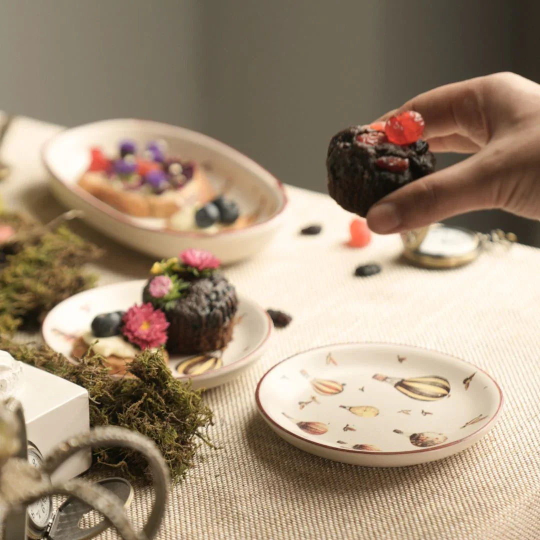 Handcrafted Stoneware Tea Plate – Vintage Hot Air Balloon Design | Ceramic Dessert & Snack Plate