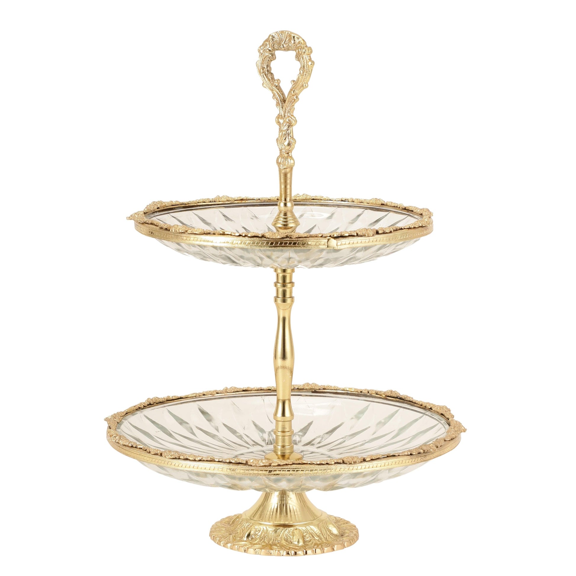 Spearhead Crystal Double Cake Stand In Gold