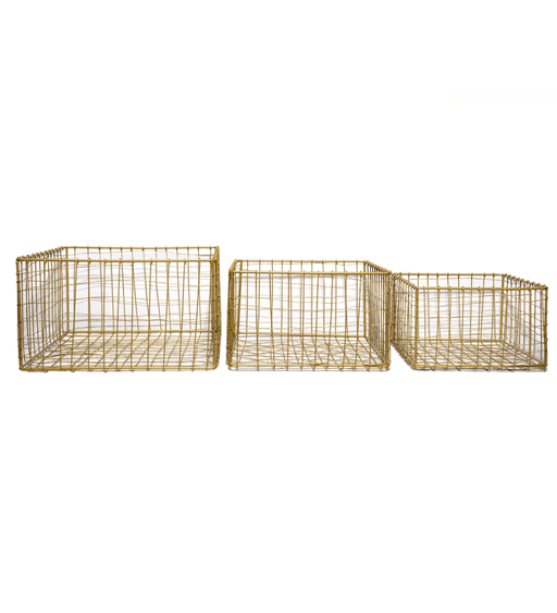 Gold-Plated Metal Round Wire Basket Set – Multi-Purpose Decorative Fruit Bowl and Table Organizer (Pack of 2)