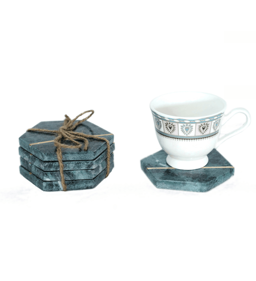 Marble Tea/Coffee/Cocktail Coaster Set of 4 pcs, Table Decorative Cocktail Coaster (Hexagon) Heat-Resistant Coasters for Hot & Cold Beverages
