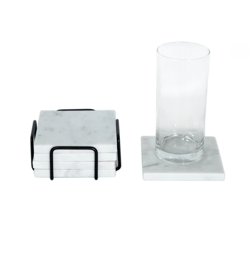 White Marble Tea/Coffee/Cocktail Coaster Set of 4 pcs, Table Decorative Cocktail Coaster (Square) Heat-Resistant Coasters for Hot & Cold Beverages