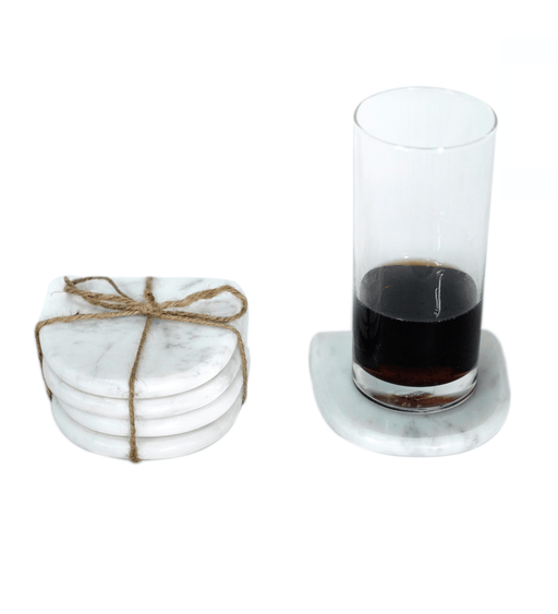 White Marble Tea/Coffee/Cocktail Coaster Set of 4 pcs, Table Decorative Cocktail Coaster (Half Round Shape) Heat-Resistant Coasters for Hot & Cold Beverages