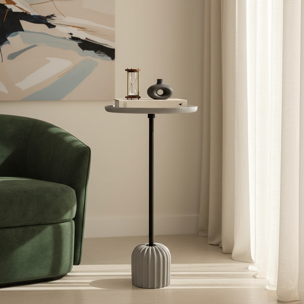Concrete Side Table | Modern Minimalist End Table with Metal Base for Living Room & Bedroom