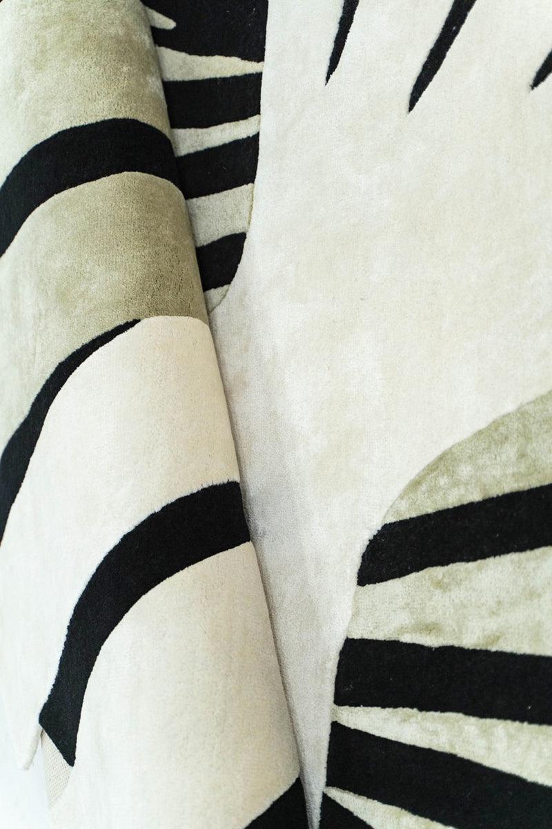 Unveil the 'Lyra' rug, a luxurious center piece that marries modern design with celestial inspiration. Its bold, geometric patterns in contrasting black and ivory tones transform any room into a sophisticated retreat. Handcrafted for durability and elegance, 'Lyra' is where comfort meets contemporary art.