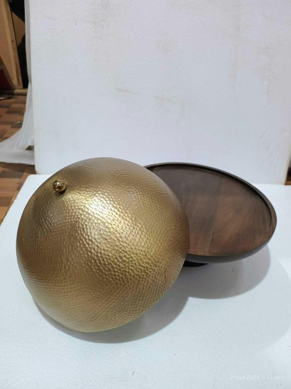 Finish: Brass Finish On Aluminium & Walnut Finish On Wood