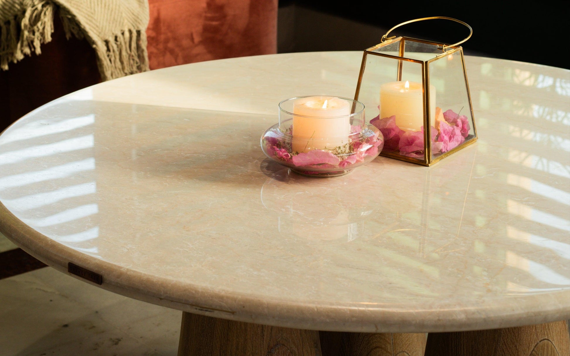 Hump Oak Wood & Marble Top Center Table For Living Room | Wooden Coffee Table | Sofa Table