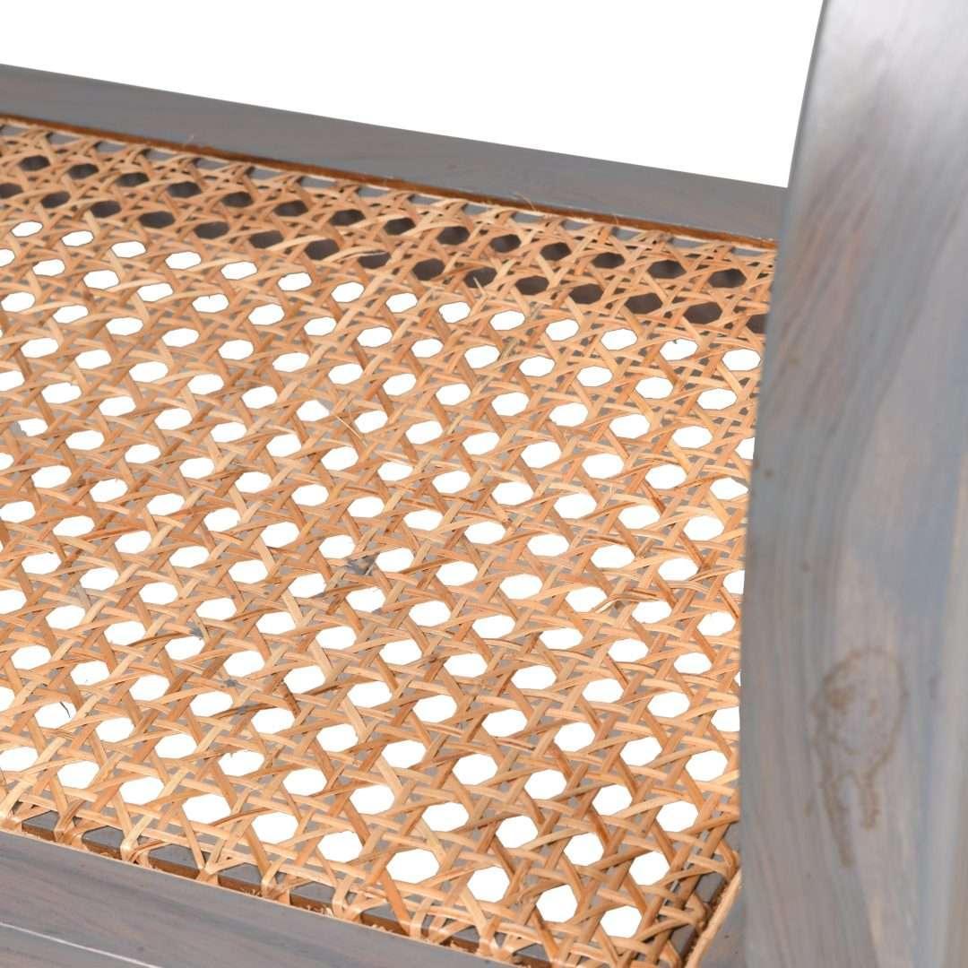 The distinct teakwood wood frame with a look-through of cane from the sides does nothing less than wonders for your area. This console table elevates the ambience as the clear glass top reflects a sense of classics.